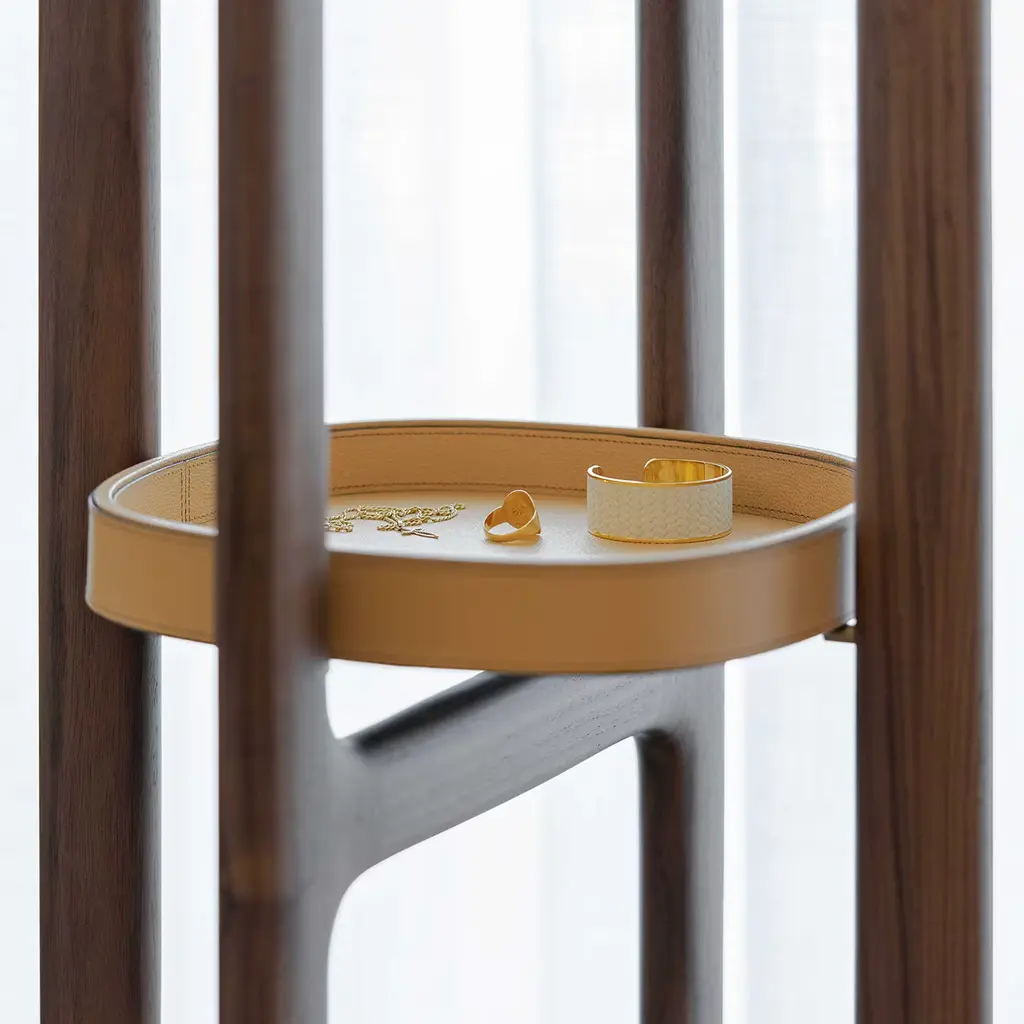 Part of the Chelsea Collection, this latest valet stand seamlessly blends practicality with elegance. Featuring luxurious leather trays and accented by a sleek brass clothing rack, it exudes sophistication. Personalization options extend to both the leather type and color, ensuring it integrates seamlessly into any interior. This exquisite piece is presented in a rich hazelnut hue, adding warmth and refinement to any space.