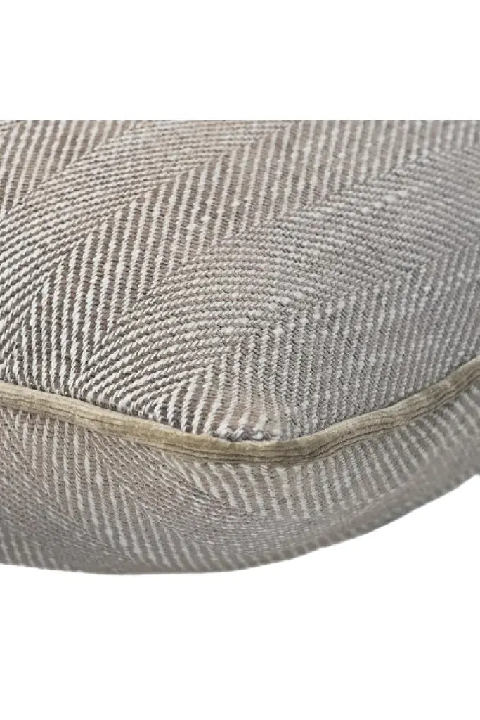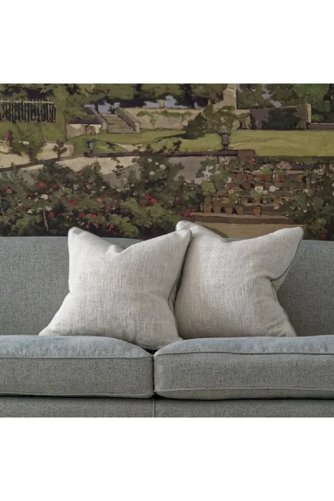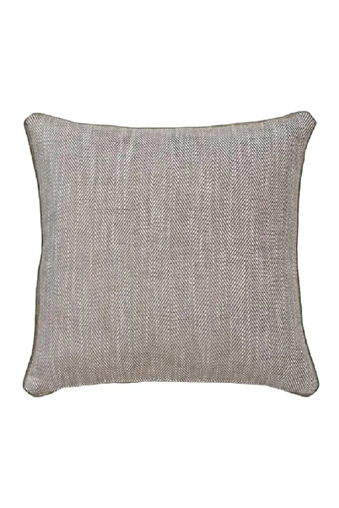 exceptionally soft chenille cushion with a two-tone herringbone in cooling linen and piping in smart blue, Paraggi Muscari, and in smart taupe and white with velvet Mossop Taupe piping. Summit cushion by Andrew Martin mixes a classic, sophisticated design with a casual and clubby weave, recreating the natural charm of Portofino as well as its illustrious following. Cushion pad included.