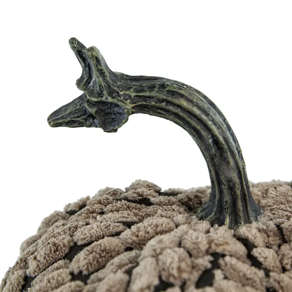 A farmhouse-inspired decoration for Thanksgiving or Halloween, this medium-sized weighted pumpkin is comprised of brown soft fabric and features a realistic stem. It’s a festive decoration for a living room shelf or a dining room tablescape. Celebrate the harvest season with this versatile decorative pumpkin. Complement harvest decor in any living room or dining room with this orange pumpkin.
