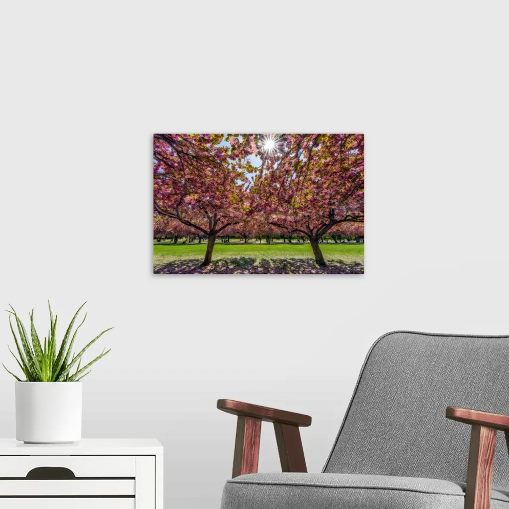 Cherry Blossom Trees In Full Bloom, Brooklyn, New York