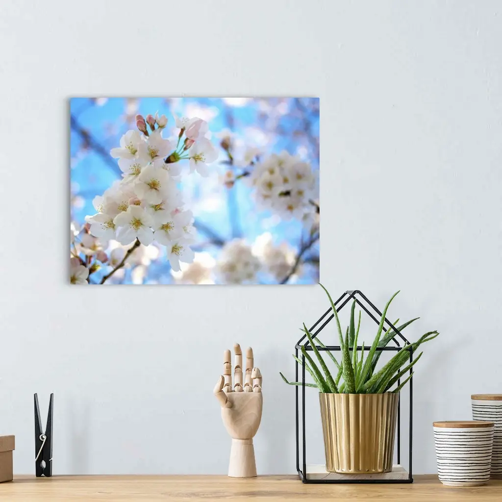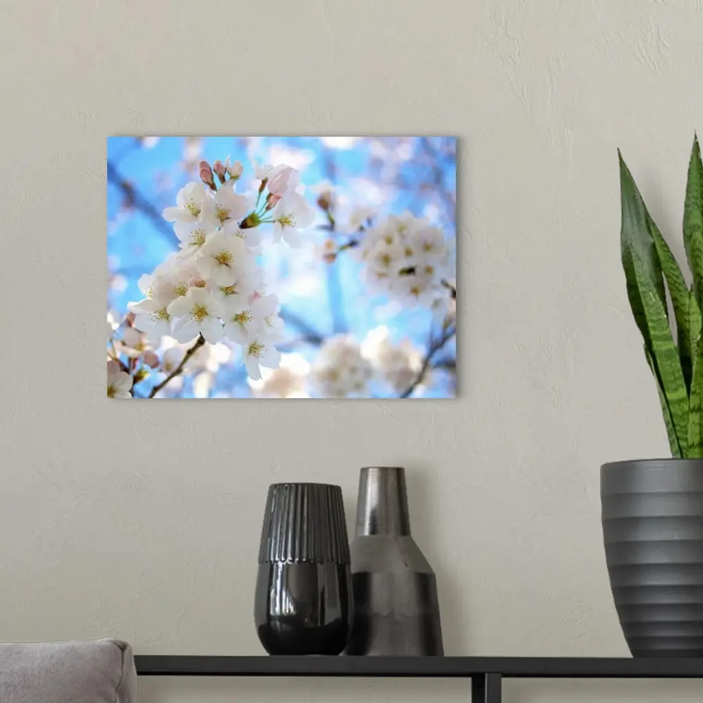 Cherry blossoms with clear sky. wall art for home and office decor. Discover canvas art prints, photos, mural, big canvas art and framed wall art in GreatBigCanvas.com's varied collections.