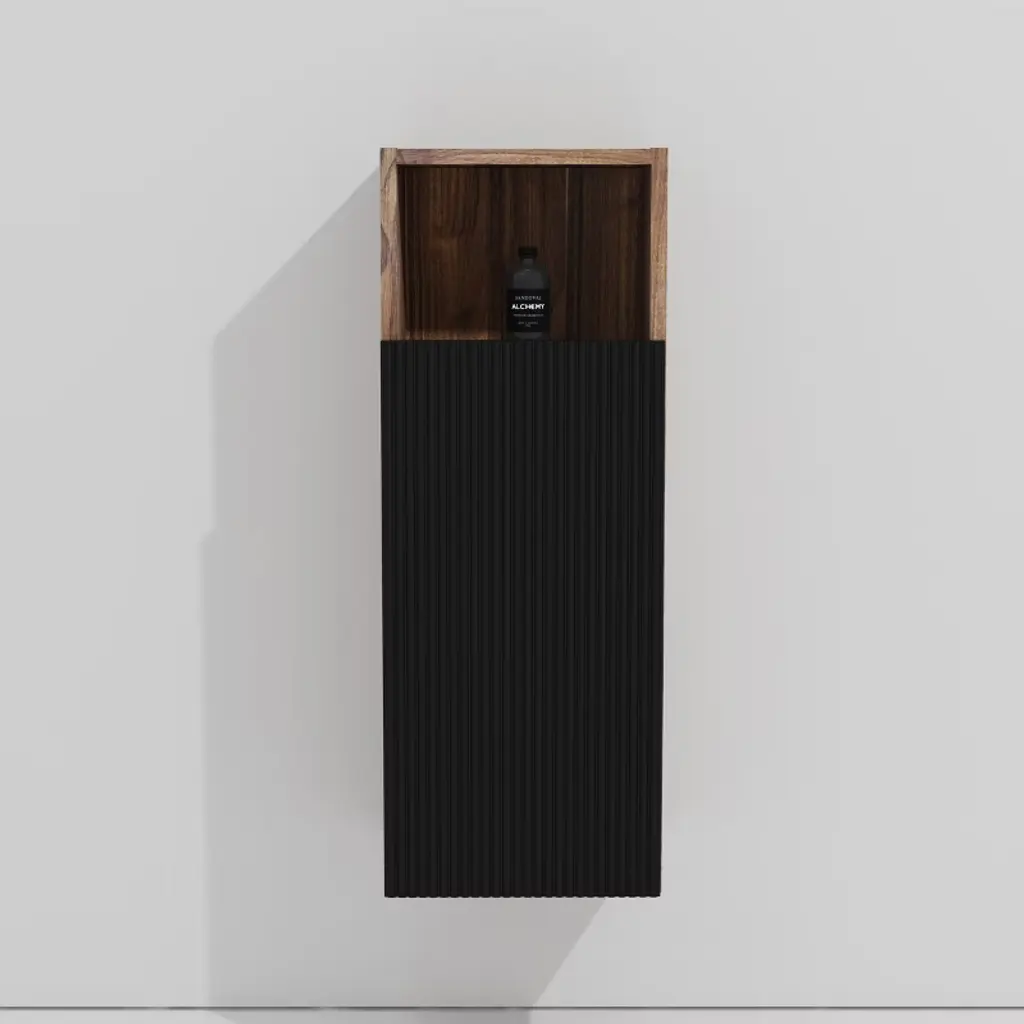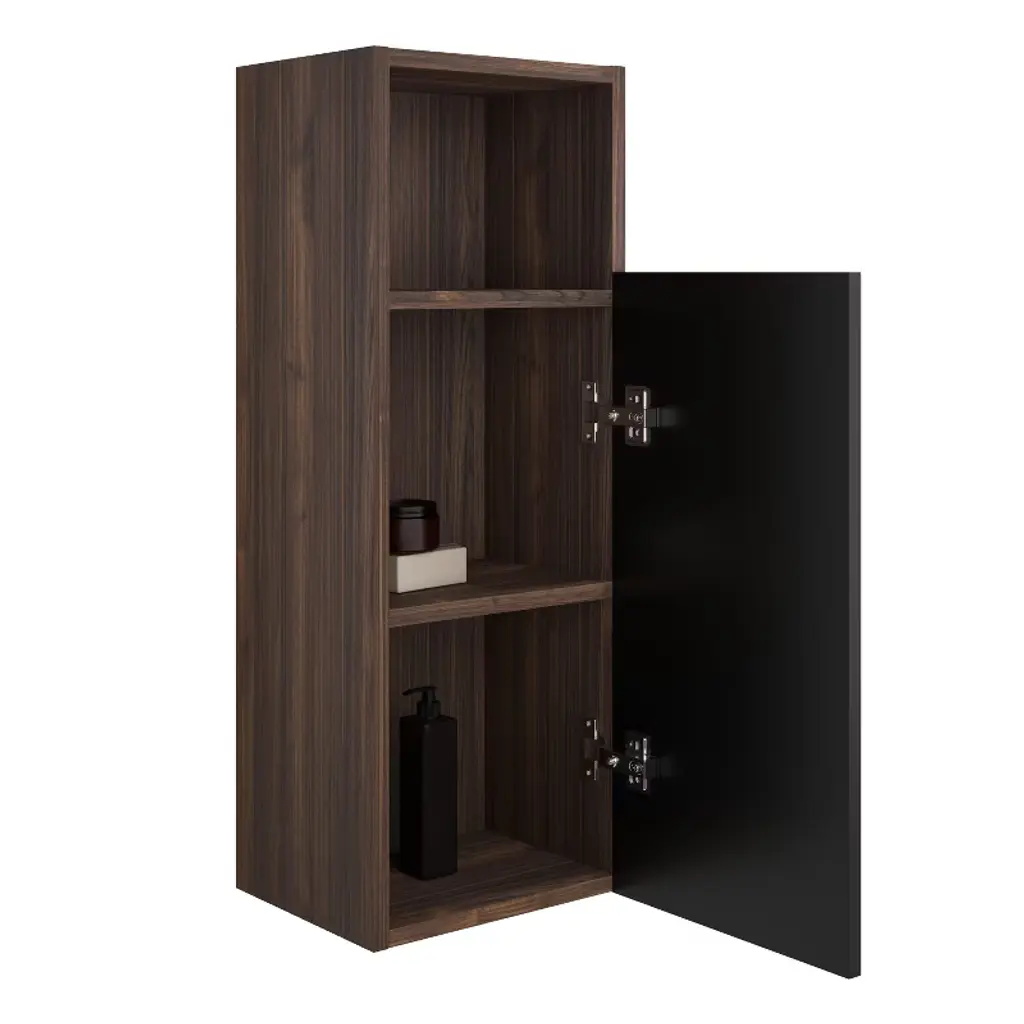 Chery Life 11.82'' X 11.82'' X 31.52'' In Black & Walnut Bathroom Floating Side Cabinet, Wall-mounted Storage Cabinet For Small Space