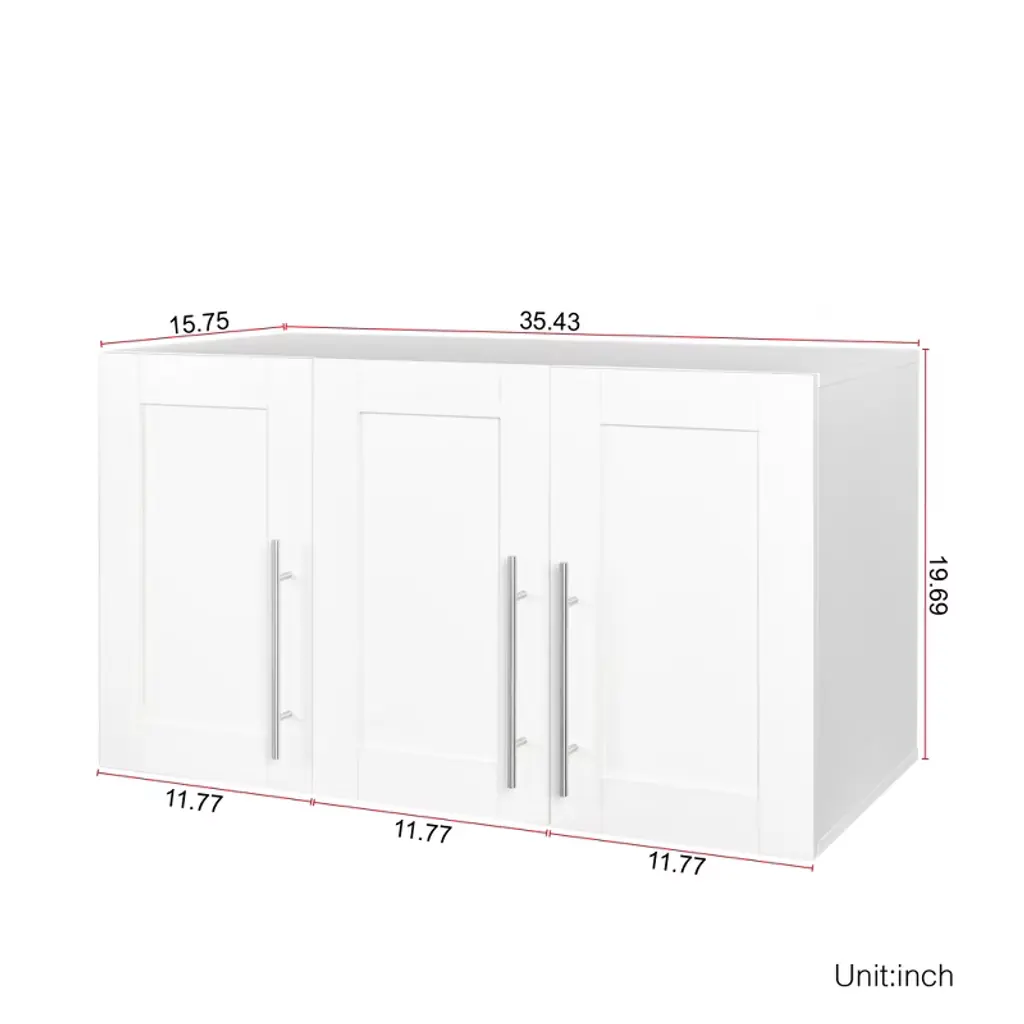 Spacious space 11.81 inches deep, offers creative storage solutions in kitchens, laundry rooms, bathrooms, garages, it is ideal for stand-alone overhead storage or paired with other elite storage cabinets Wooden side cabinet.