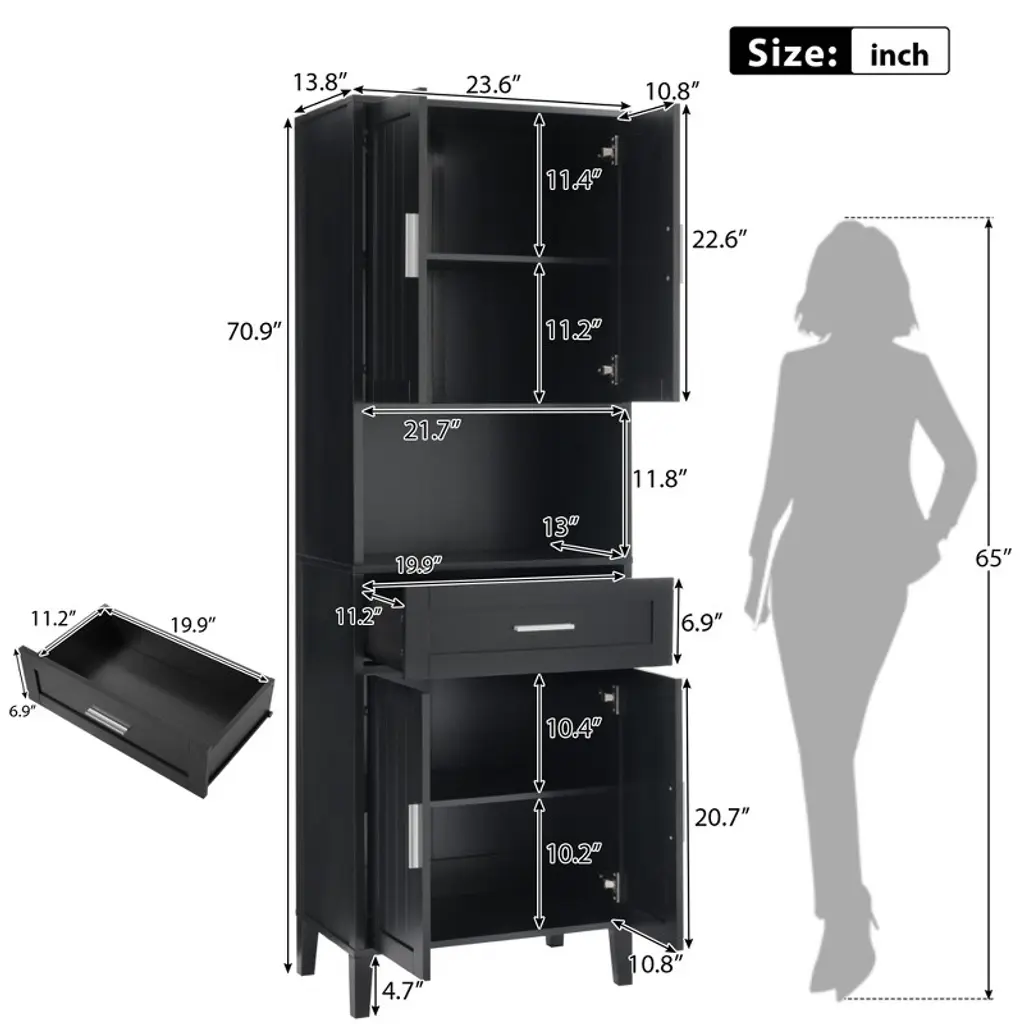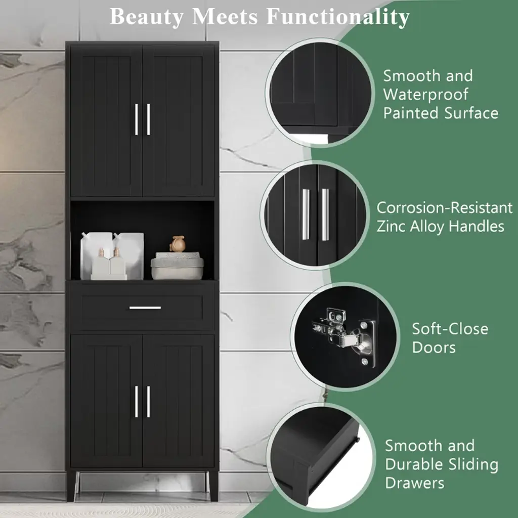 Chery Life 70.9" Tall Bathroom Cabinet With A Drawer, 2 Cabinets, 4 Soft-close Doors, 2 Adjustable Shelves, Open Storage, Black