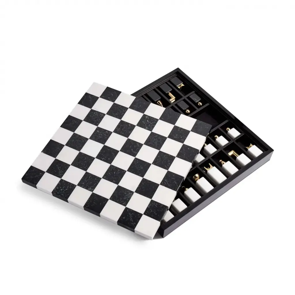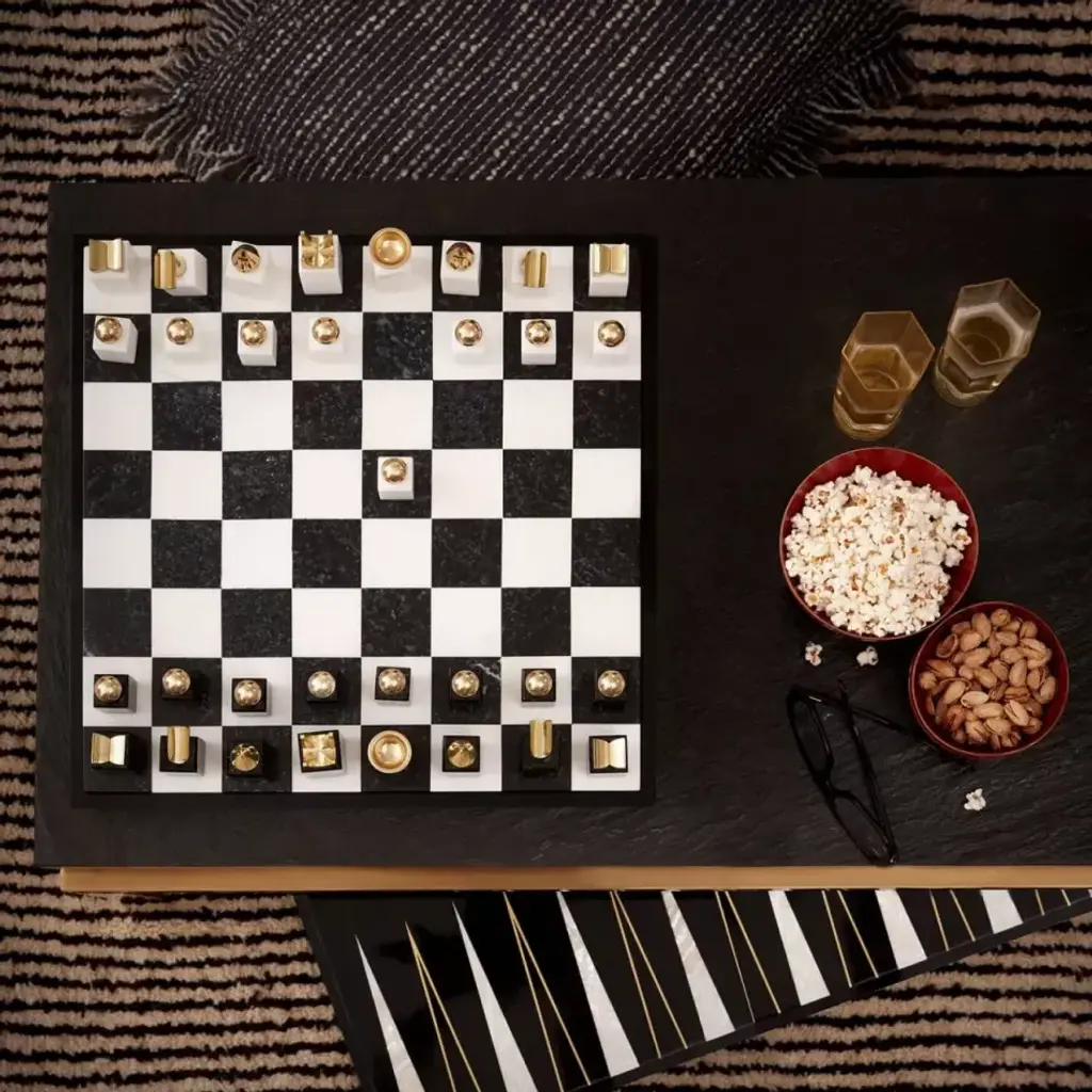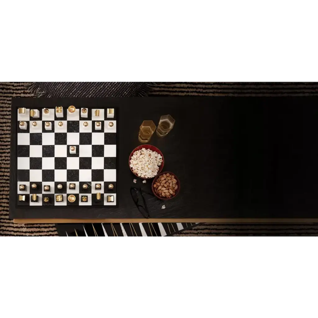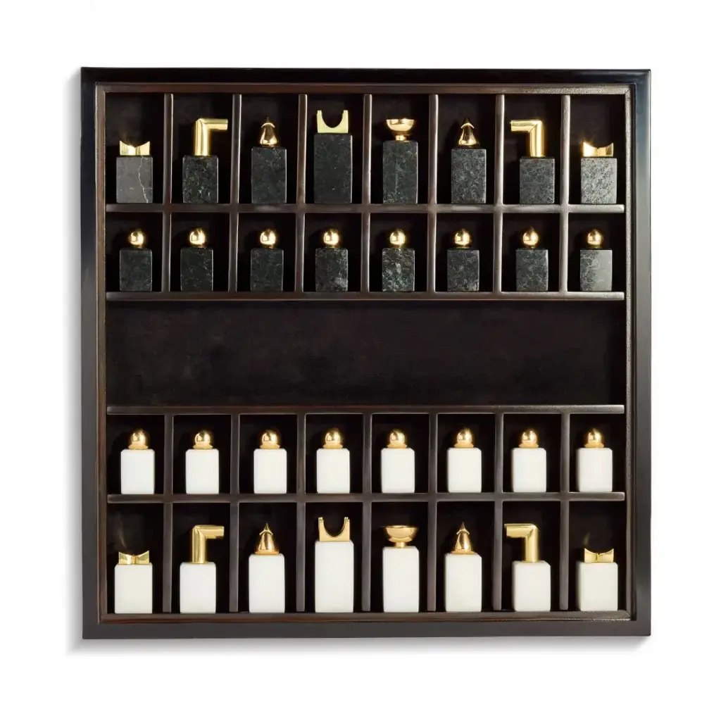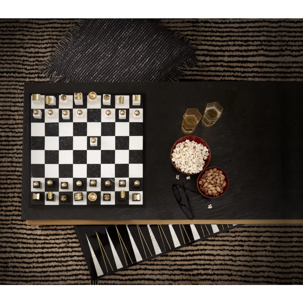 A thoughtful combination of fine textures and finishes, this Chess set expresses the more playful side of L’OBJET. Boasting materials such as lacquered Macassar ebony wood, marble, brass and shell inlay, this handsome piece will become the focal point of the room. Marble and brass chess pieces are abstract interpretations of the iconic movable objects. Prior to founding L’Objet in 2004, Israeli-born Elad Yifrach was a successful designer in Beverly Hills. He was creating beautiful interiors, but he was frustrated by the limited options available in home accessories, so he set out to create something better. L’Objet’s collections are diverse, but they are almost always inspired by nature and architecture. Many of his exquisite serving pieces rest in a base of hand-crafted gold foliage, other pieces feature intricate design and beadwork, and some of the most striking objects actually look like miniature buildings. And despite the lux feel, much of the line is practical with just a touch of whimsy.