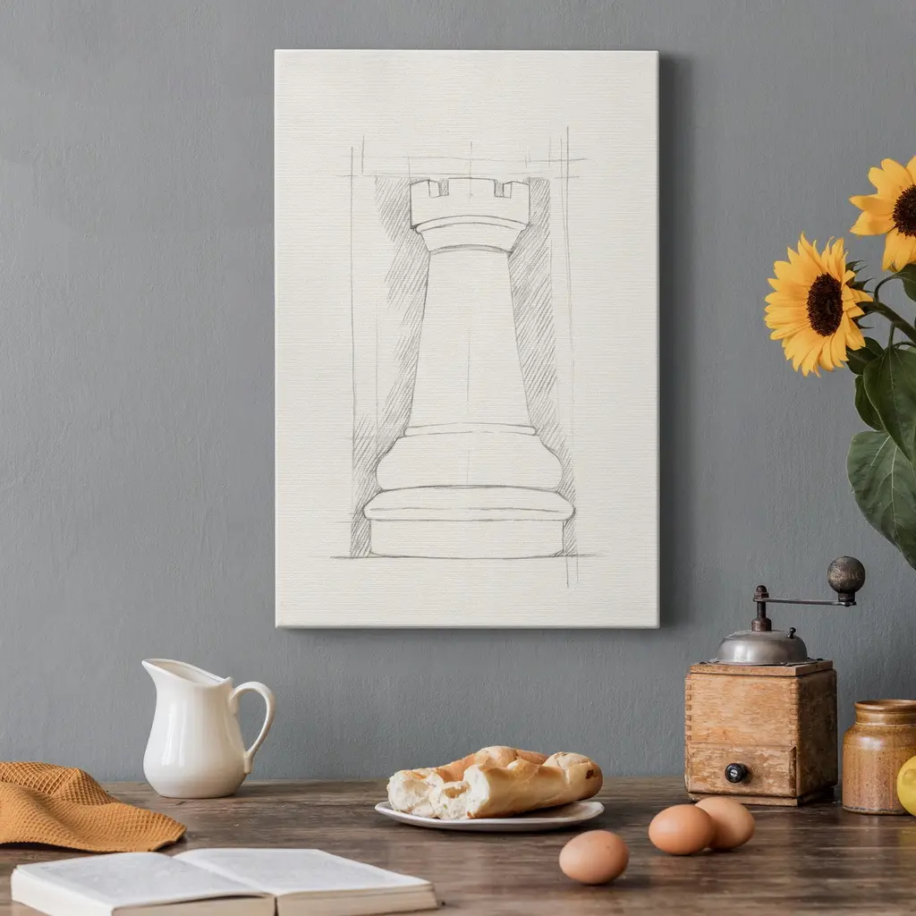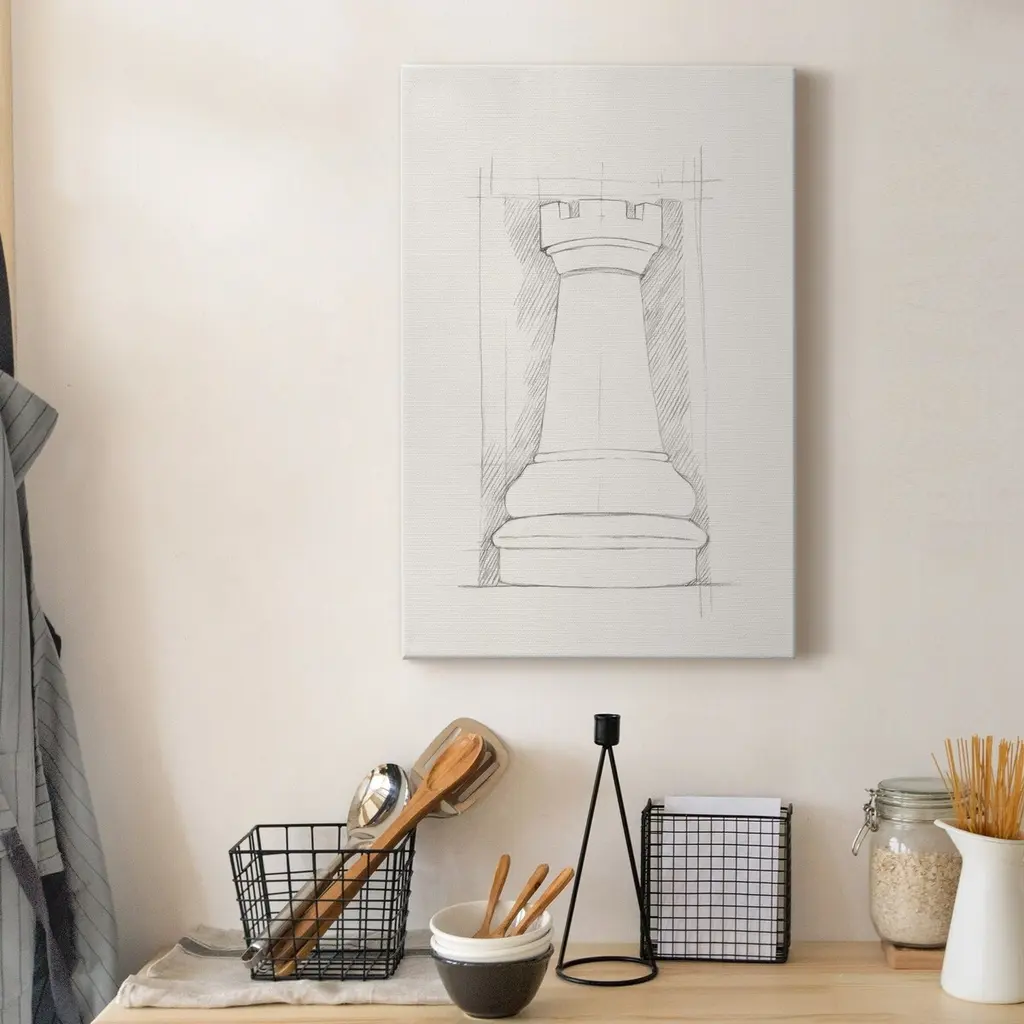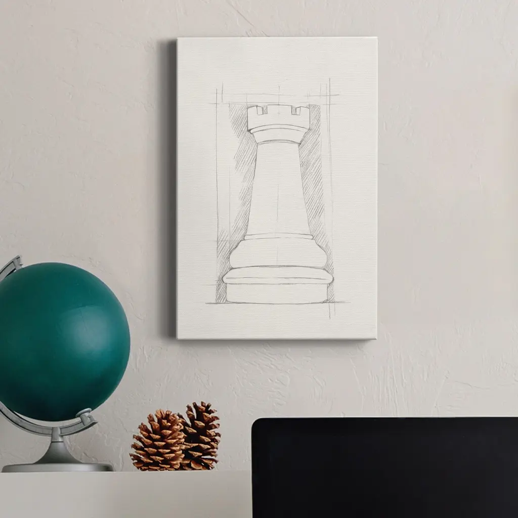 Chess Set Sketch IV Premium Gallery Wrapped Canvas - Ready to Hang A premium hand stretched gallery wrapped canvas print created to last. Featuring a beveled a solid wood stretcher bar, each piece comes ready to hand 6 SIZES AVAILABLE 8''X12'' - Overall Size 12''X18'' - Overall Size 18''X27'' - Overall Size 24''x36'' - Overall Size 32''x48'' - Overall Size 40''x60'' - Overall Size Each piece is made to order. Built to Last Each piece comes ready to hang Solid wood stretcher Fade and Water resistant Made domestically