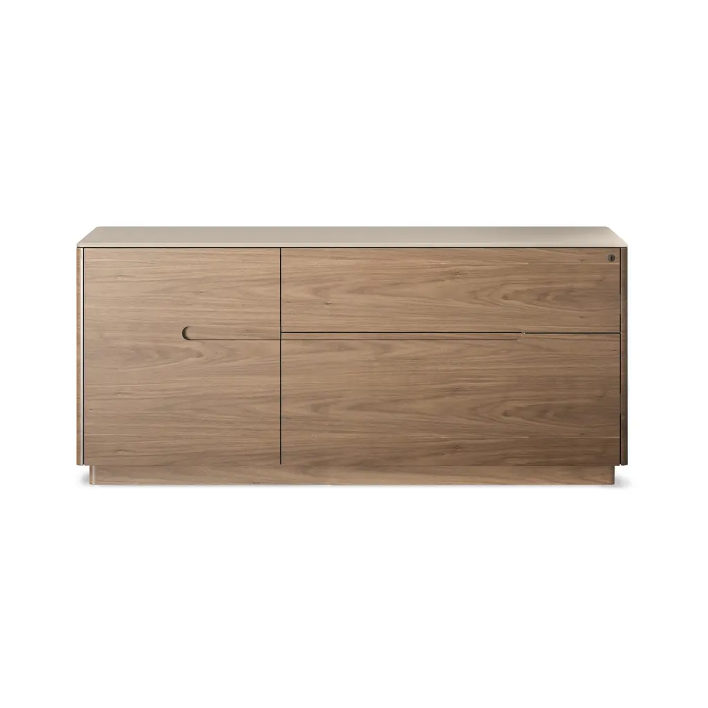This contemporary piece has references from the 60s with a sleek and high-end design. The structure is lacquered in stone grey with two large drawers in oak veneer. The chest comes with four drawers in two sizes and has four push-pull drawers. A functional storage option for contemporary interiors. It also has a wooden base.Please contact us if you have any questions about customization and pricing. We will be glad to check with the factory’s technical team if sizes, finishes, and colors can be customized. We do our best to expedite production and to ship and deliver product within the listed lead time, however current lead times might be longer due to global shipping backlog and delays. These delays are out of our control and cannot be a reason to cancel an order.