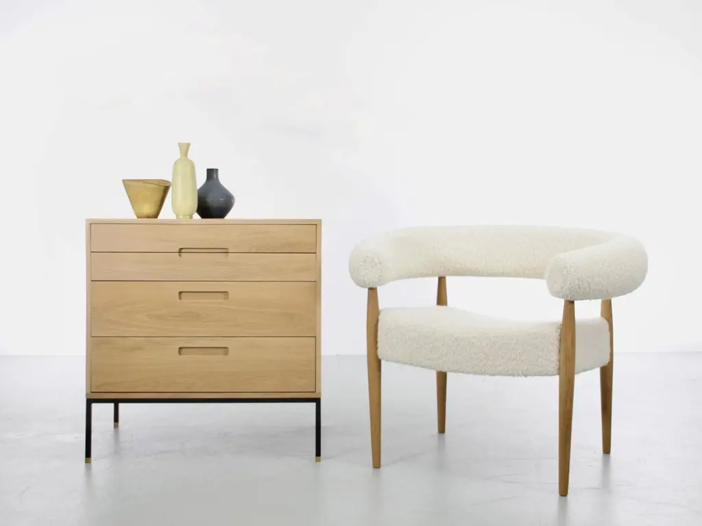 Cosmopol is an elegant and minimalist furniture line inspired by the values of Scandinavian functionalism.Entirely made in France, each piece is individually produced according to your dimensions:You can choose the depth and width of the cabinet, the wood species, and the color of the base.The cabinet and drawers are made of solid ash, oak or walnut, either oiled or covered with a water-resistant matte clear varnish. The interior of the drawers is made of solid ash wood. The joints are made with dovetail connections using environmentally friendly non-toxic glues. The varnishes are water-based and non-polluting, and the oil used is organic and vegetable-based. The base is made of satin-finished lacquered steel, available in black, white, or a range of twenty colors from the RAL palette (contact us). The legs can be finished with solid wood caps of the same species as the cabinet or with black plastic glides.We only use high-quality solid wood sourced from sustainably managed forests, without knots, cut from the most noble parts of the tree.