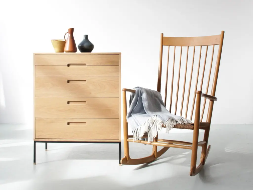 Cosmopol is an elegant and minimalist furniture line inspired by the values of Scandinavian functionalism.Entirely made in France, each piece is individually produced according to your dimensions:You can choose the depth and width of the cabinet, the wood species, and the color of the base.The cabinet and drawers are made of solid ash, oak or walnut, either oiled or covered with a water-resistant matte clear varnish. The interior of the drawers is made of solid ash wood. The joints are made with dovetail connections using environmentally friendly non-toxic glues. The varnishes are water-based and non-polluting, and the oil used is organic and vegetable-based. The base is made of satin-finished lacquered steel, available in black, white, or a range of twenty colors from the RAL palette (contact us). The legs can be finished with solid wood caps of the same species as the cabinet or with black plastic glides.We only use high-quality solid wood sourced from sustainably managed forests, without knots, cut from the most noble parts of the tree.