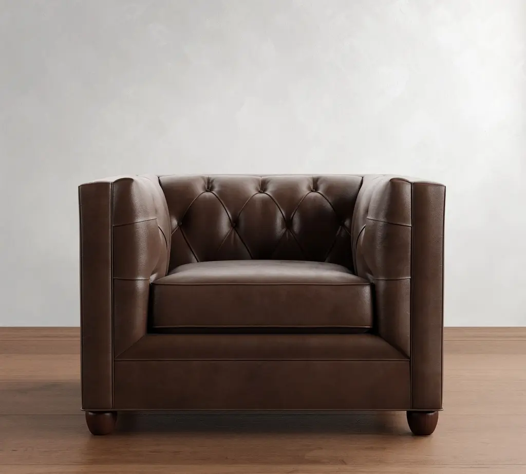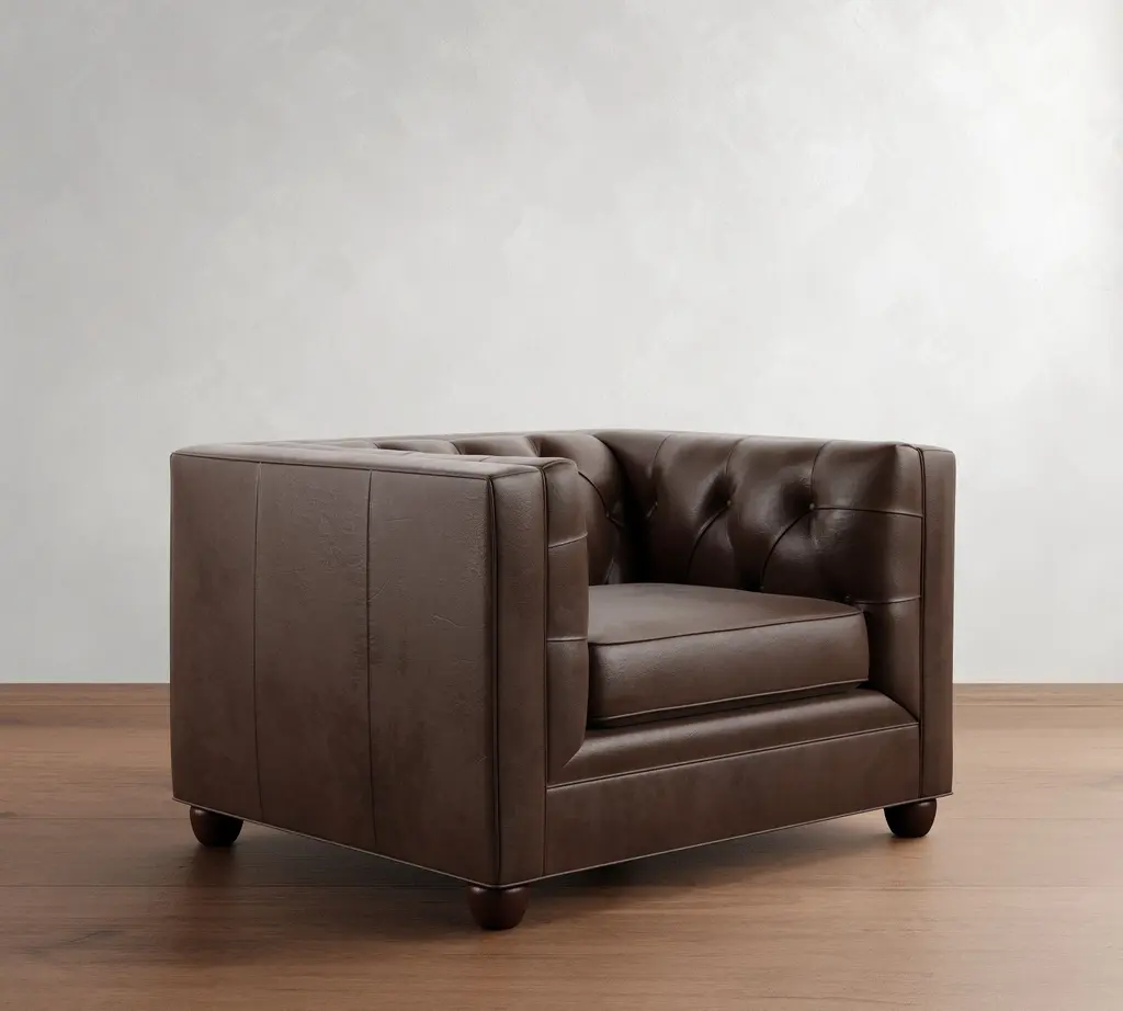 Our popular Chesterfield Leather Collection has a fresh look. The sheltering silhouette and deep button tufting nod to its historical design, but the new square arm makes it feel a touch more modern.