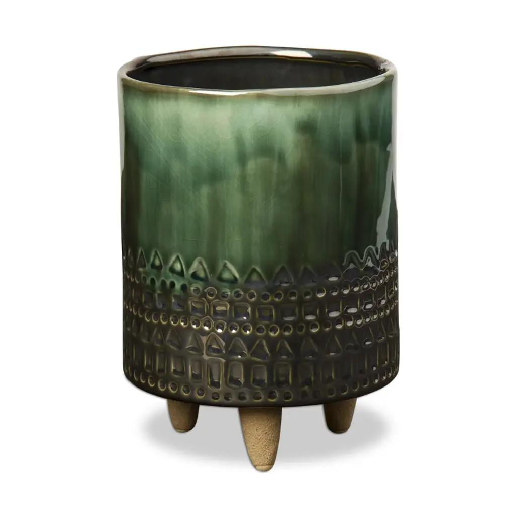 Bring home a natural touch that complements outdoor themes and lush looks. Made from ceramic materials to create a unique look, this piece features a rounded, abstract gray-blue design with a double linear pattern. Let it complete your space today and add an eye-catching element!