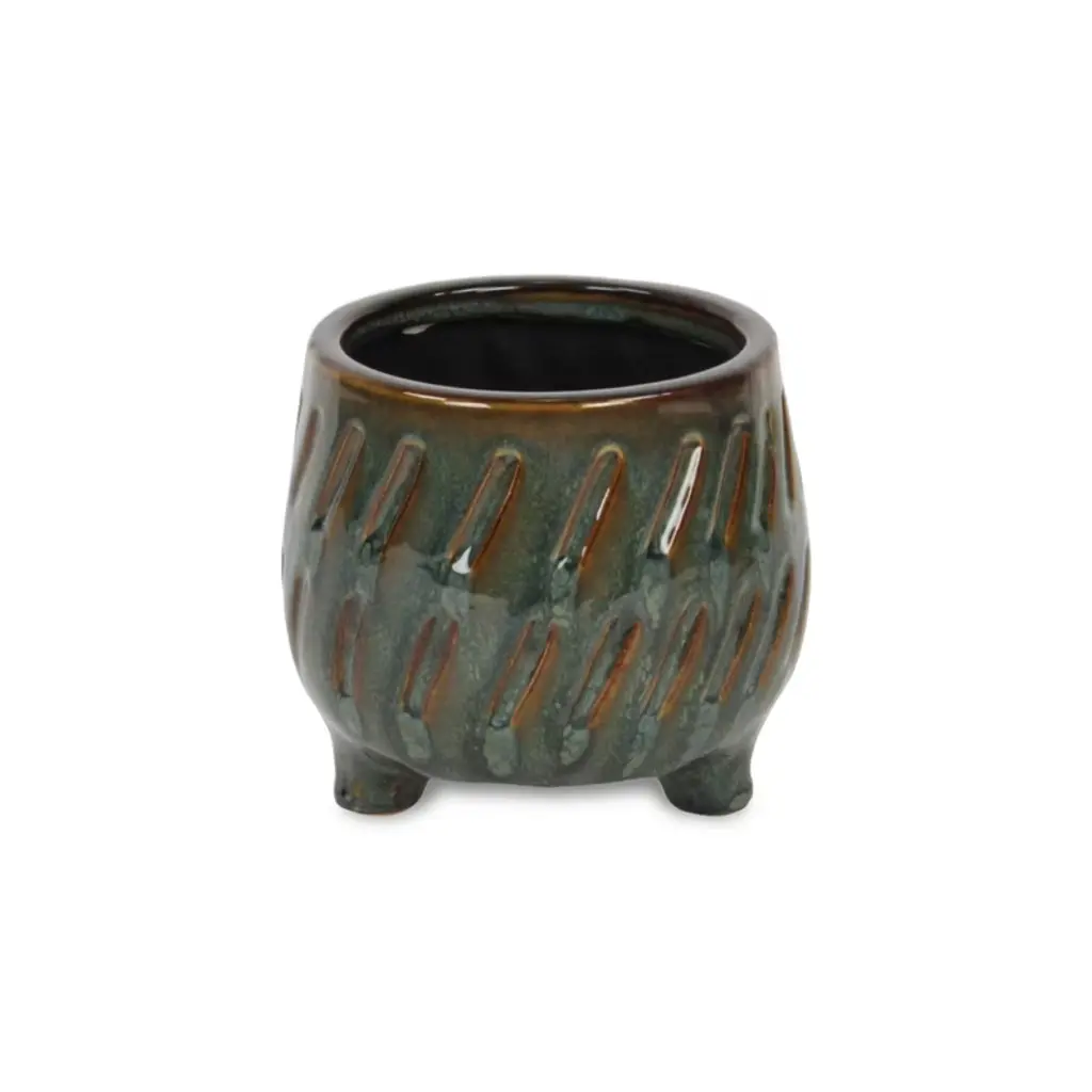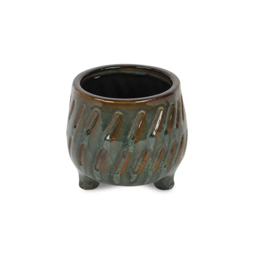 Cheung's Astrona Raised Round Dual Band Diagonal Patterned Ceramic Pot- Small - Dark Copper