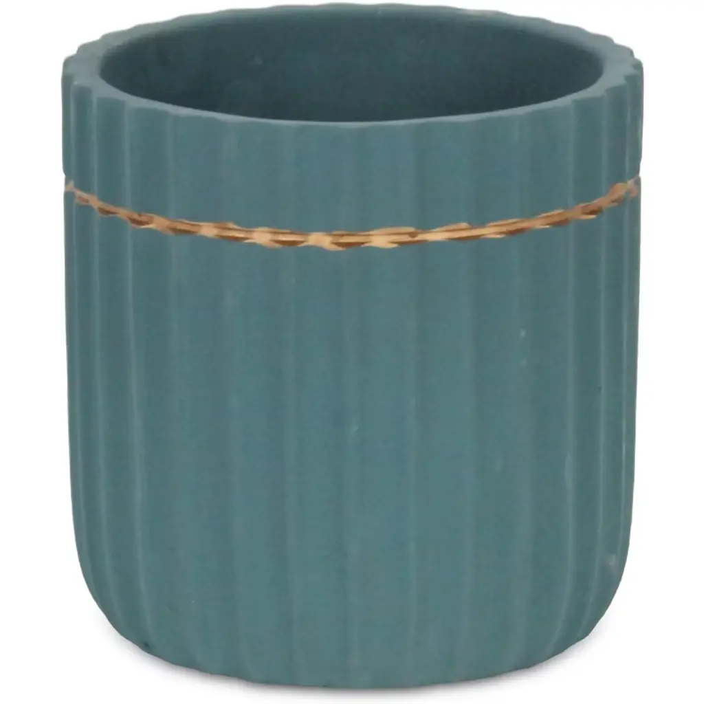 Bring home a natural touch that complements outdoor themes and lush looks. Made from ceramic materials to create a unique look, this piece features a ridged pattern in a blue finish with a sleek gold accent band. Let it complete your space today and add an eye-catching element!
