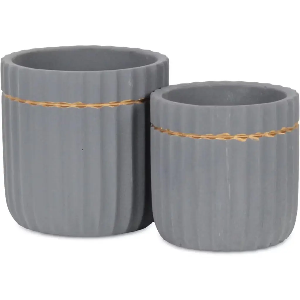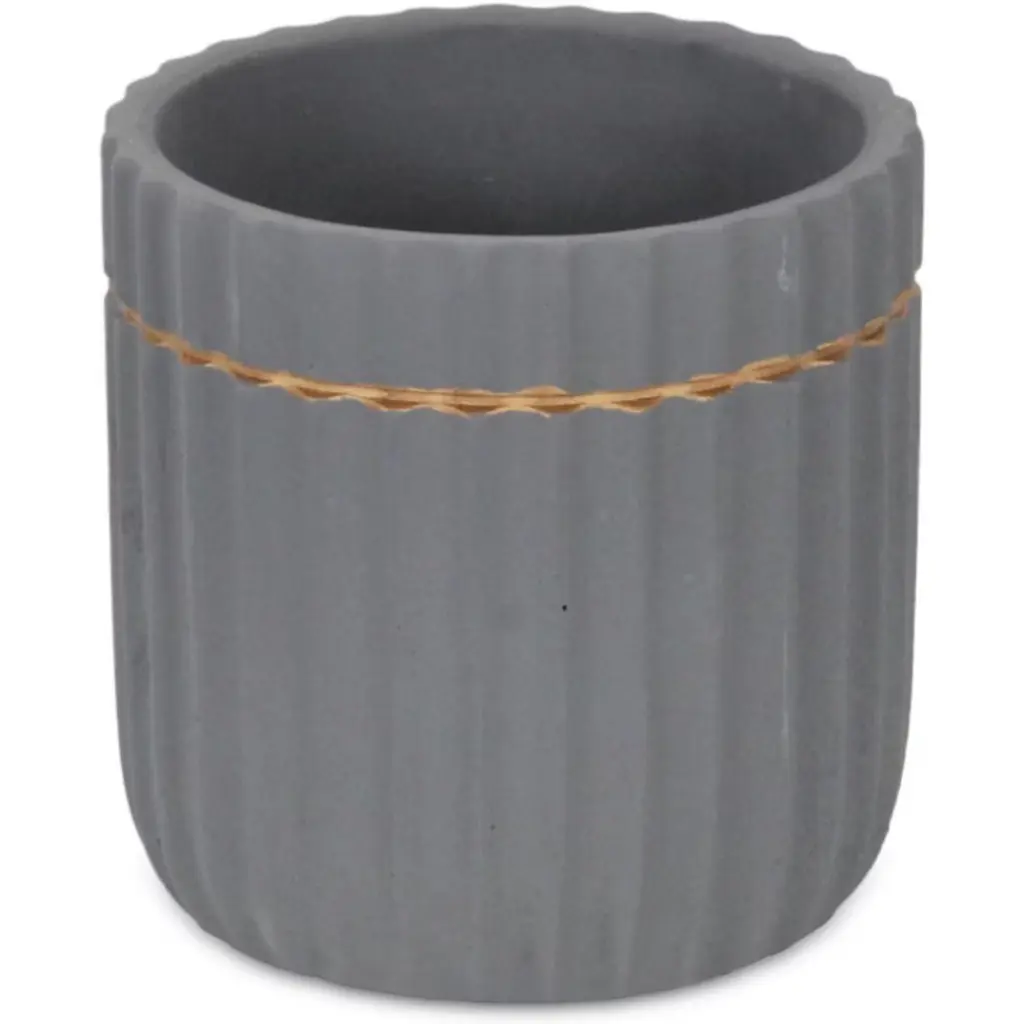 Bring home a natural touch that complements outdoor themes and lush looks. Made from ceramic materials to create a unique look, this piece features a ridged pattern in a gray finish with a sleek gold accent band. Let it complete your space today and add an eye-catching element!