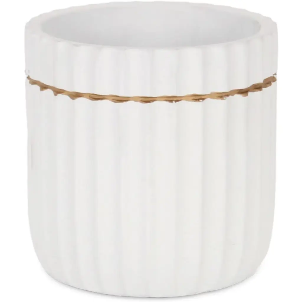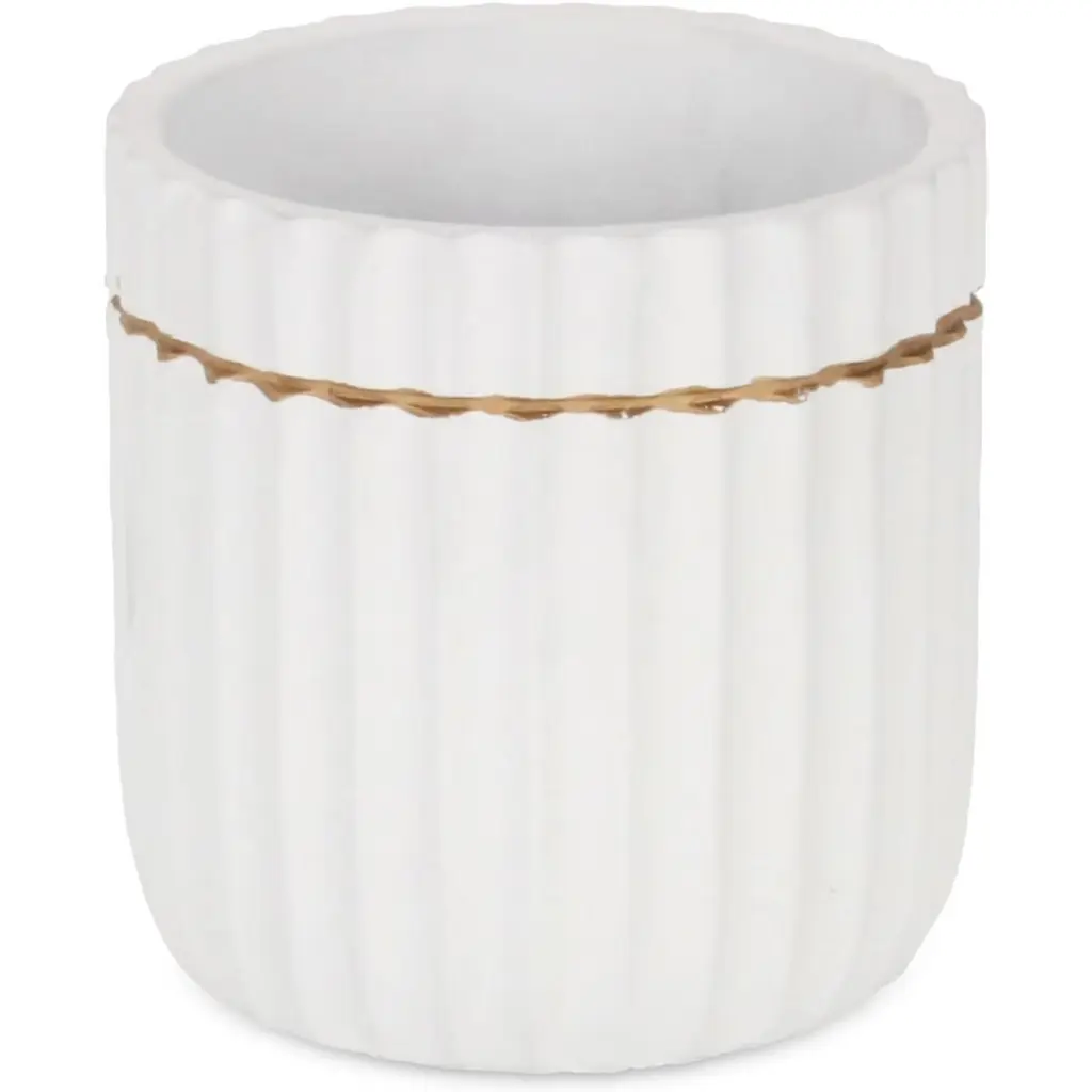 Bring home a natural touch that complements outdoor themes and lush looks. Made from ceramic materials to create a unique look, this piece features a ridged pattern in a white finish with a sleek gold accent band. Let it complete your space today and add an eye-catching element!