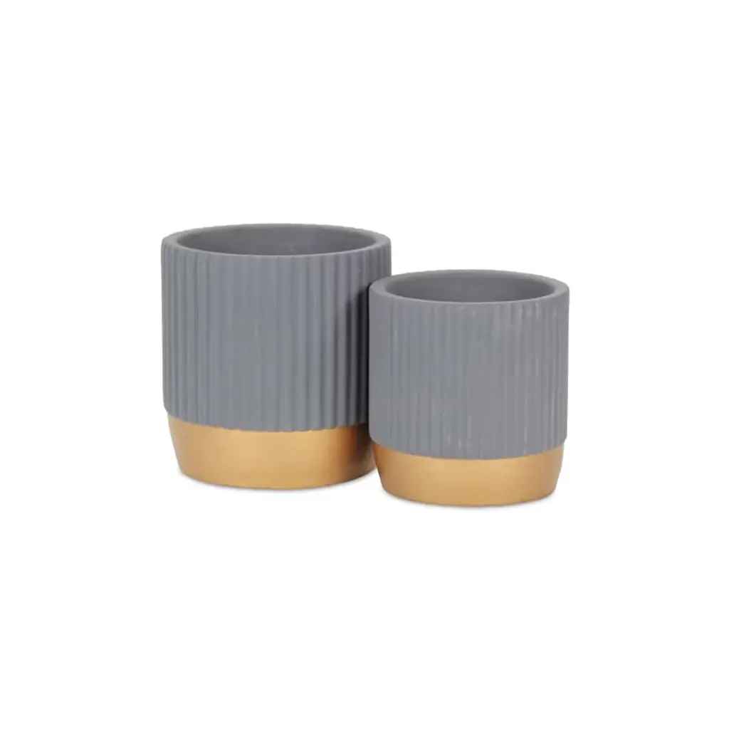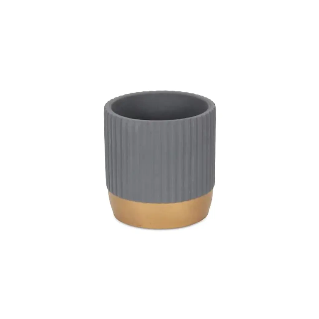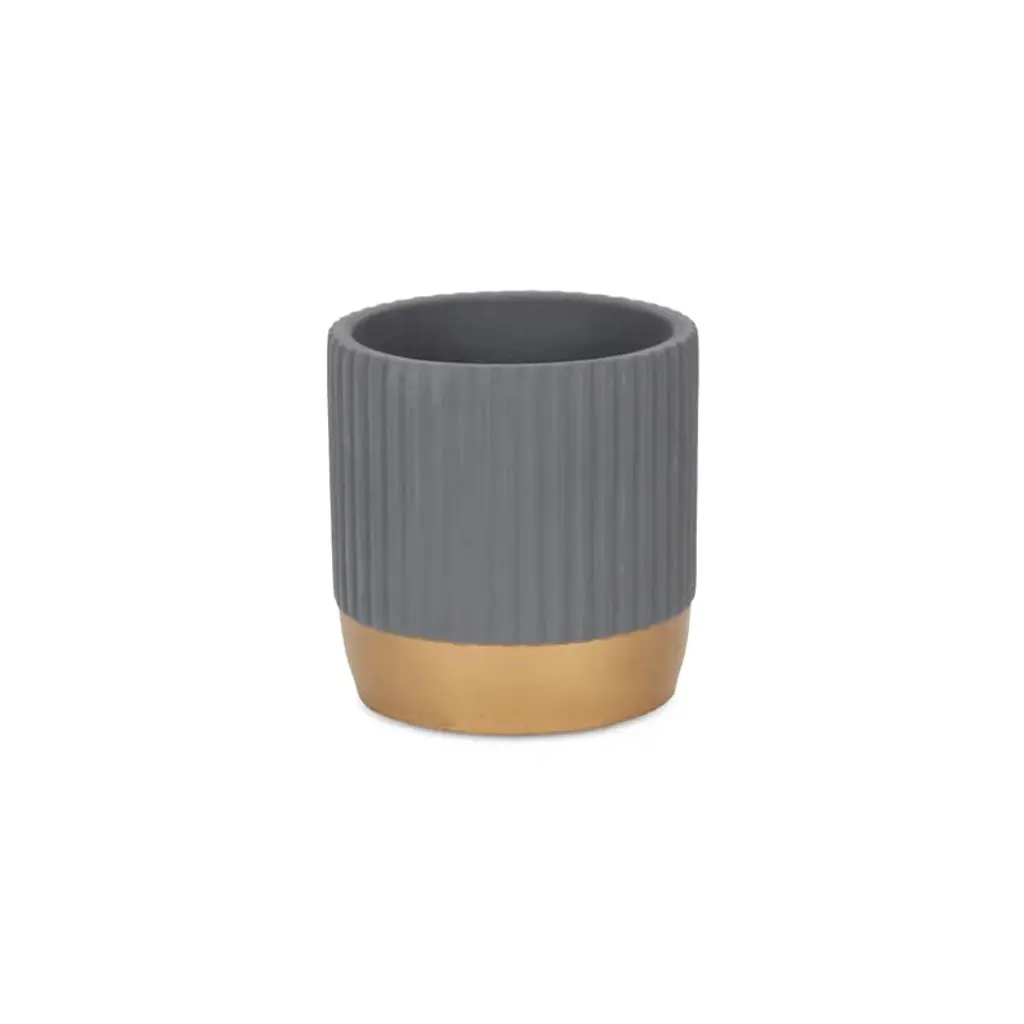 Cheung's Aurone Round Ridged Ceramic Pot With Gold Finished Base - Large - Gray