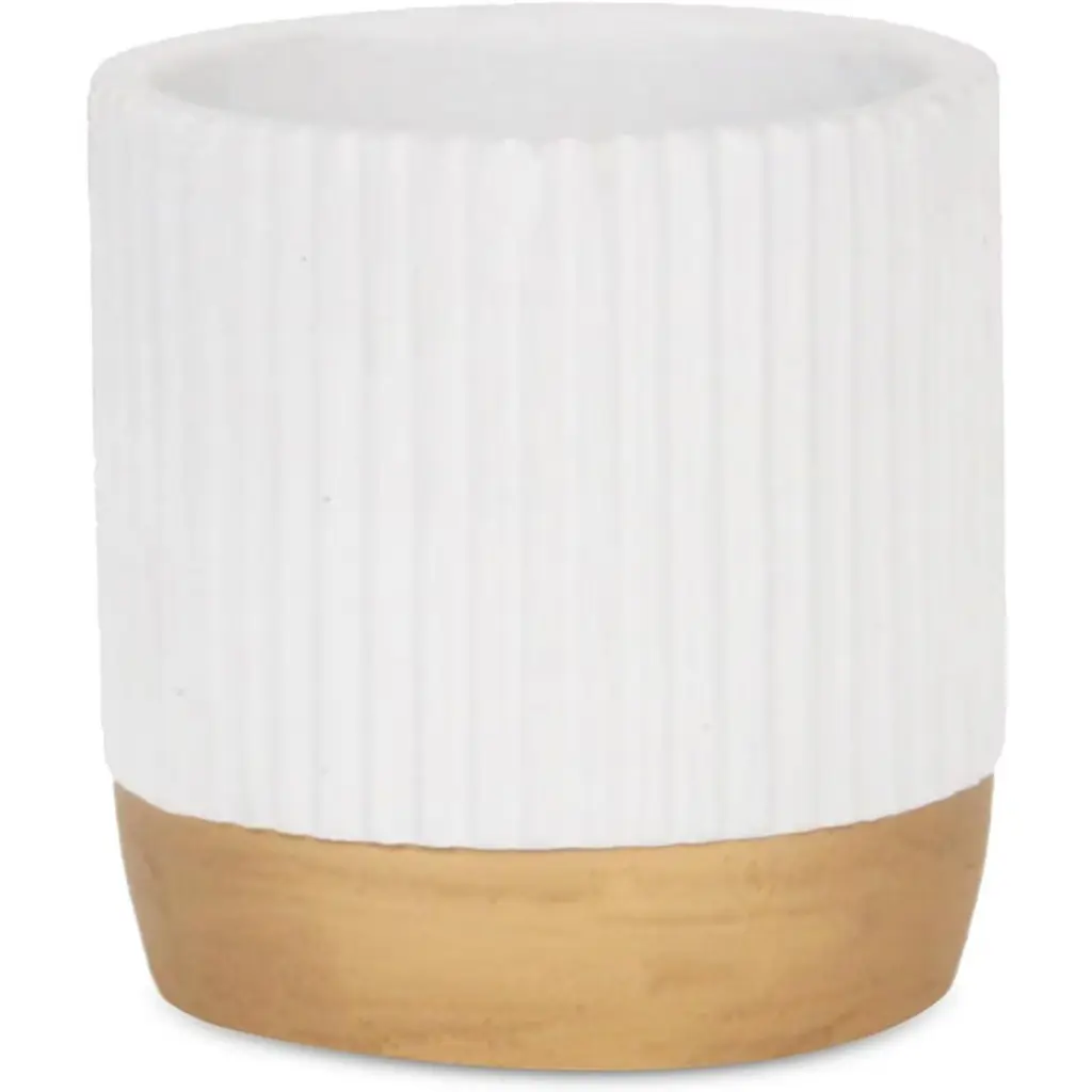 Bring home a natural touch that complements outdoor themes and lush looks. Made from ceramic materials to create a unique look, this piece features a ridged pattern in a gray finish with a sleek gold accent base. Let it complete your space today and add an eye-catching element!