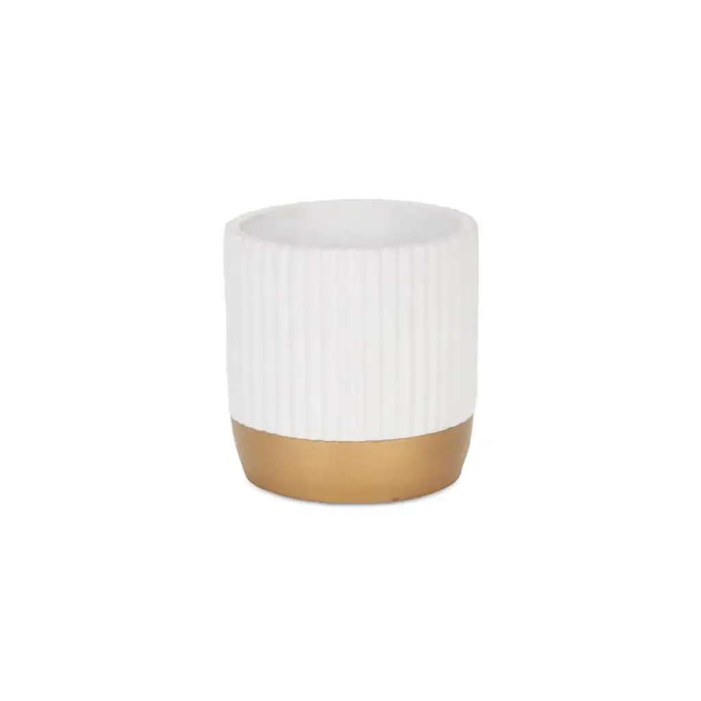 Cheung's Aurone Round Ridged Ceramic Pot With Gold Finished Base - Large - White