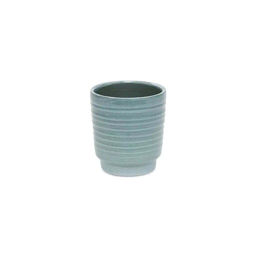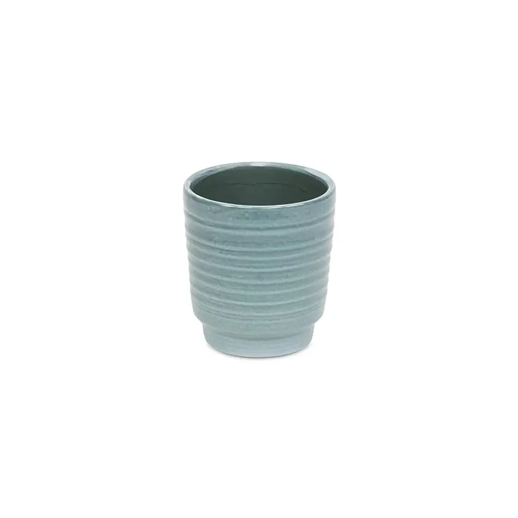 A diverse and dynamic home encompasses various types of materials to provide a well-bodied look. Ceramic has been a tried and true addition with a fresh modern look for the homes of today. This pot in particular features a sbutle green finish with a ripple exterior aesthetic. Bring a new element into your space with this ceramic piece and let it complete the look of your home or office.