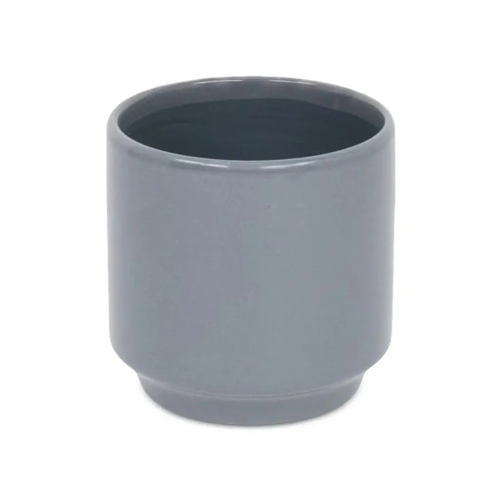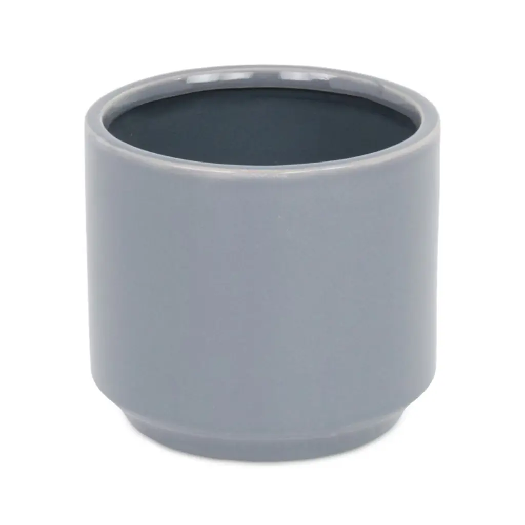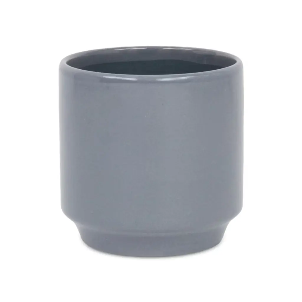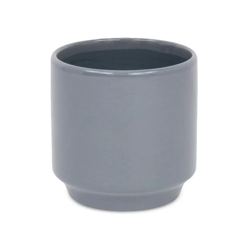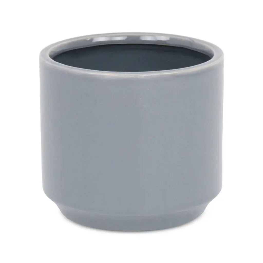 A diverse and dynamic home encompasses various types of materials to provide a well-bodied look. Ceramic has been a tried and true material with a fresh modern look for the homes of today. This gray pot in particular features a straight cylindrical shape with a tapered base and a smooth glossy finish. Bring a new element into your space with this ceramic piece and let it complete the look of your home or office.