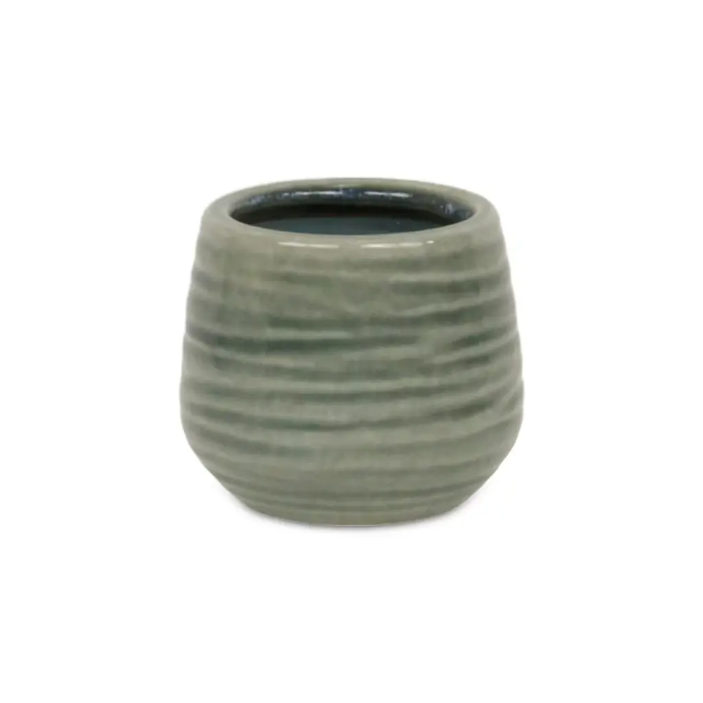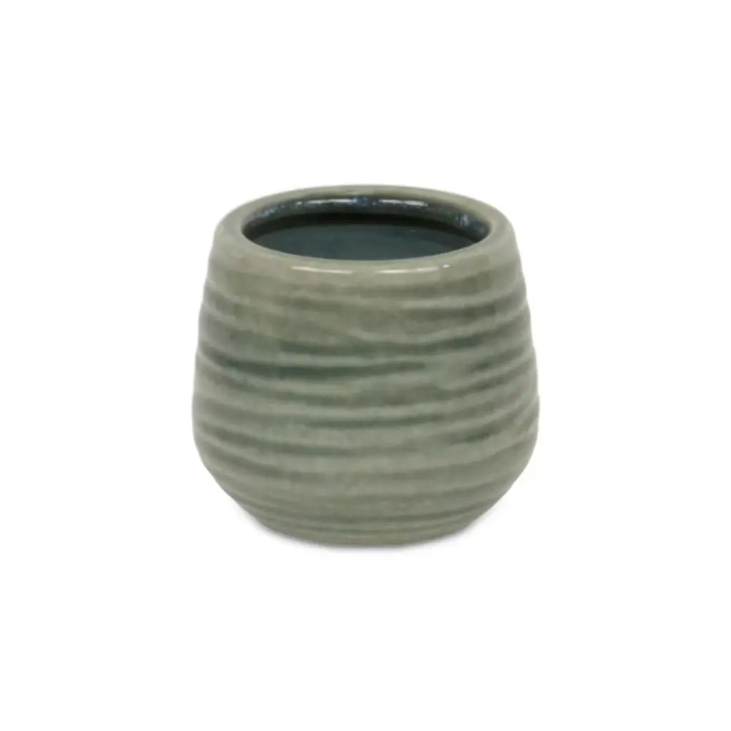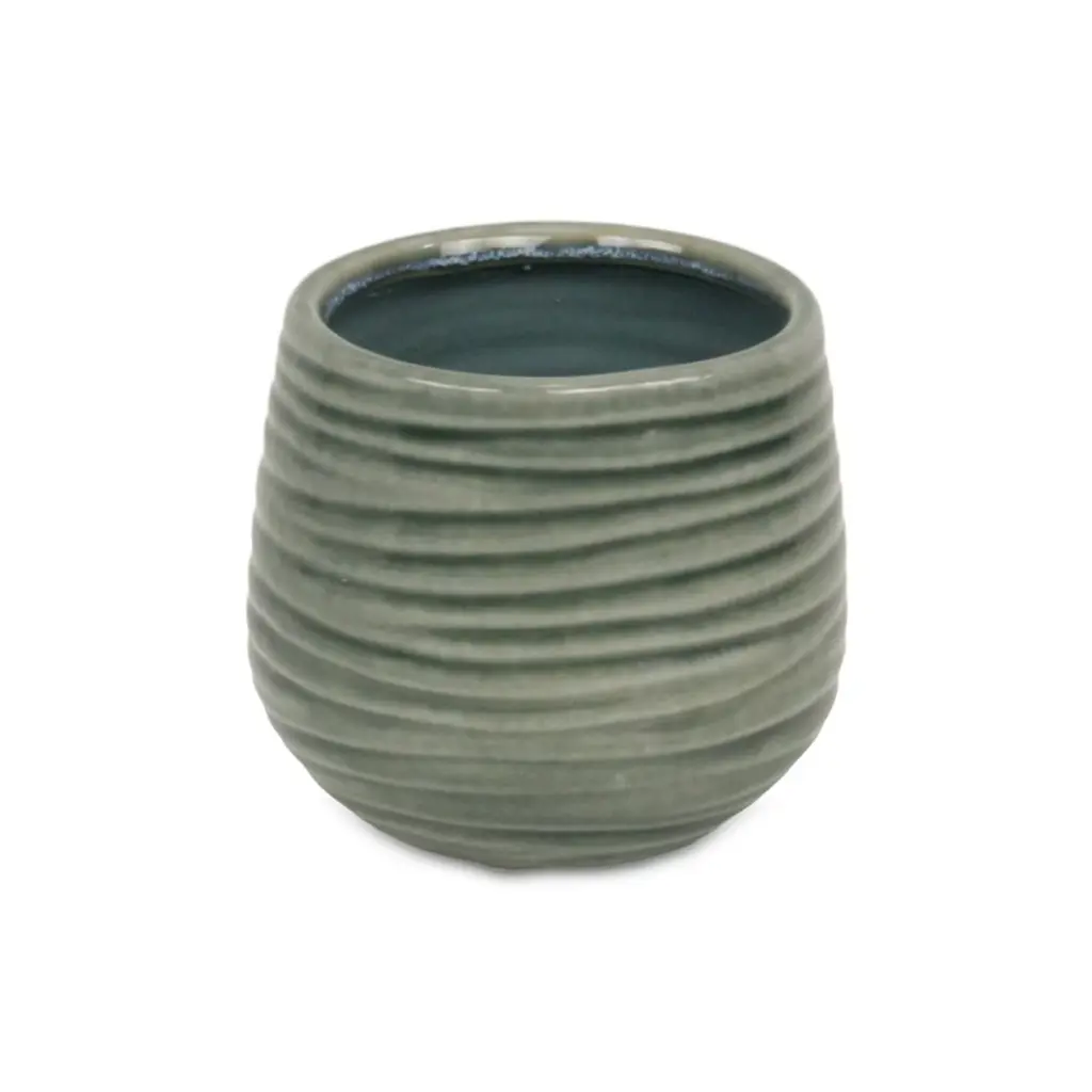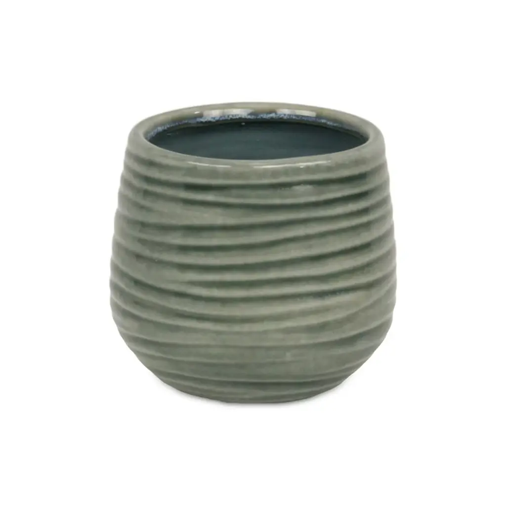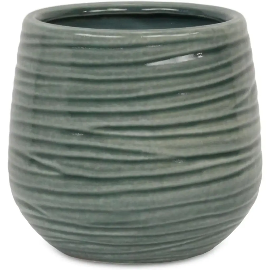 Cheung's Fairloam Round Curved Wave Lined Pattern Ceramic Pot- Medium - Green