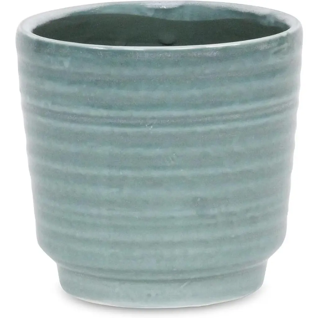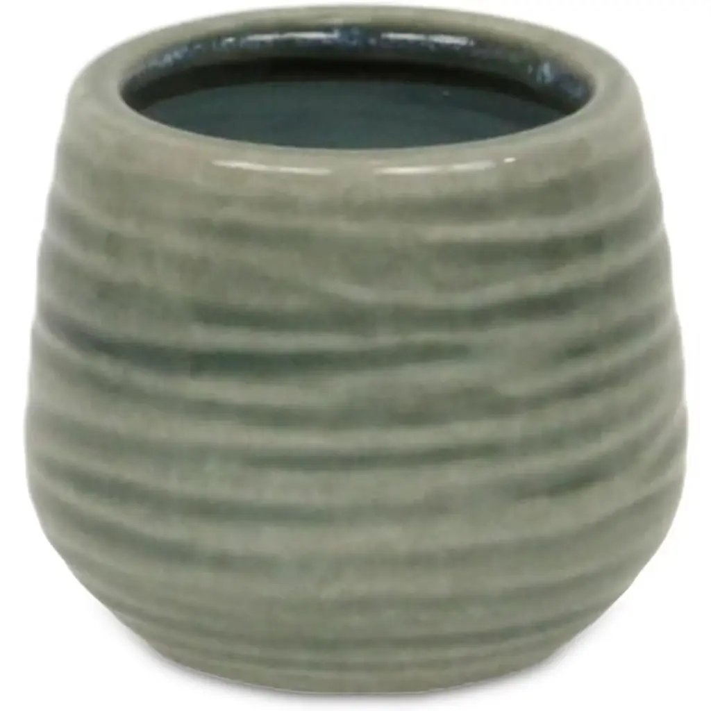 Cheung's Fairloam Round Curved Wave Lined Pattern Ceramic Pot- Small - Green