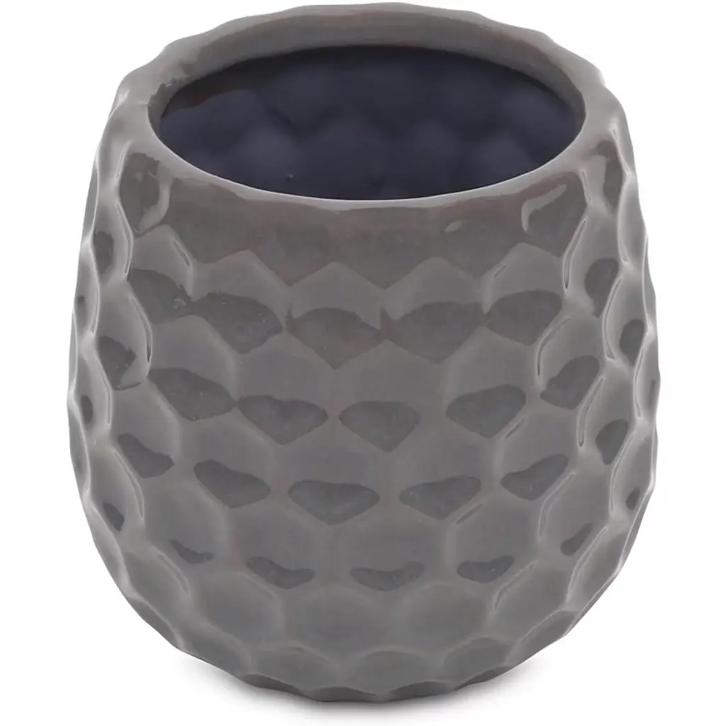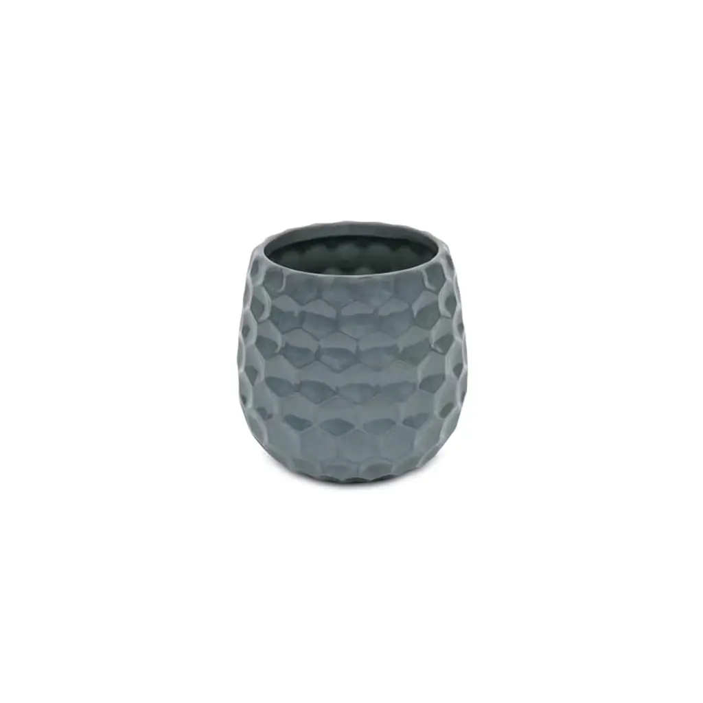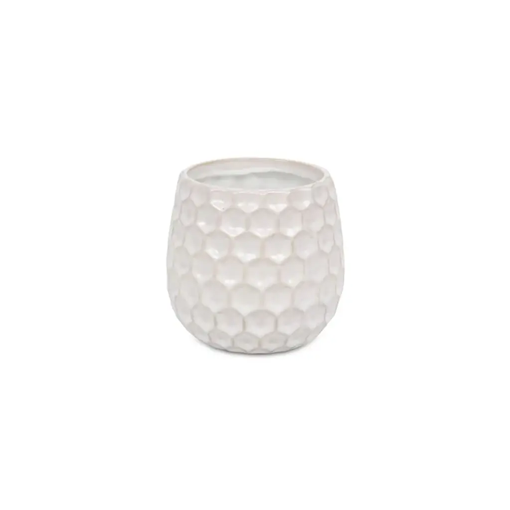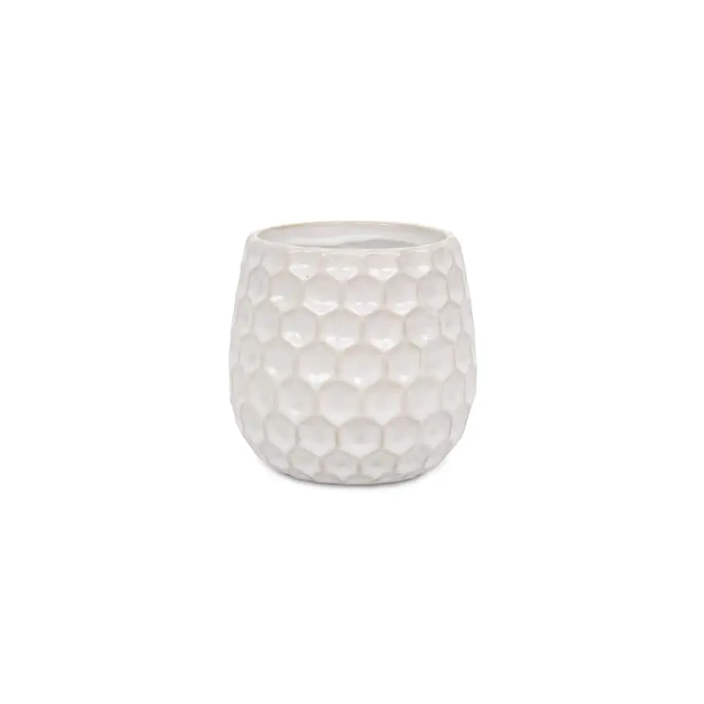 A diverse and dynamic home encompasses various types of materials to provide a well-bodied look. Ceramic has been a tried and true material with a fresh modern look for the homes of today. This piece in particular features a curved pot with a textured, hexagon pattern. Bring a new element into your space with this ceramic piece and let it complete the look of your home or office.
