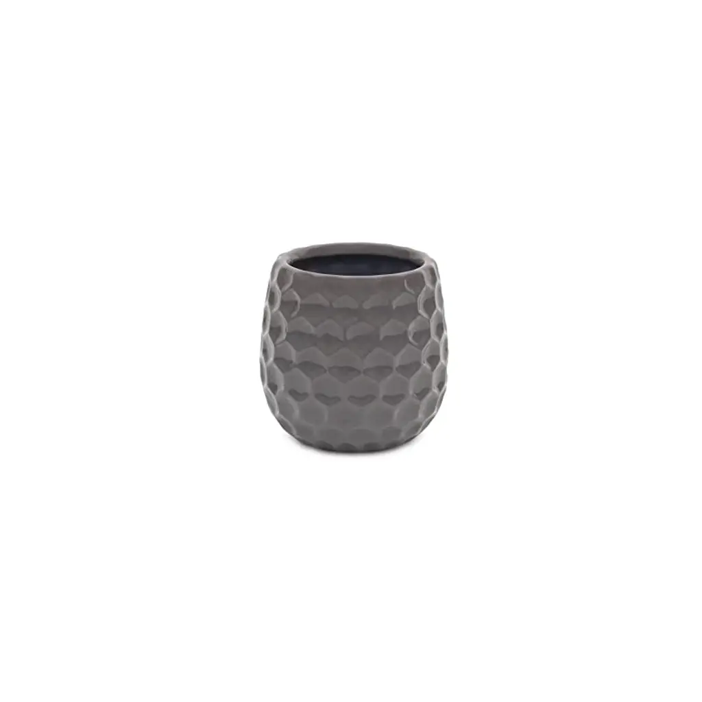 A diverse and dynamic home encompasses various types of materials to provide a well-bodied look. Ceramic has been a tried and true material with a fresh modern look for the homes of today. This piece in particular features a curved pot with a textured, hexagon pattern. Bring a new element into your space with this ceramic piece and let it complete the look of your home or office.