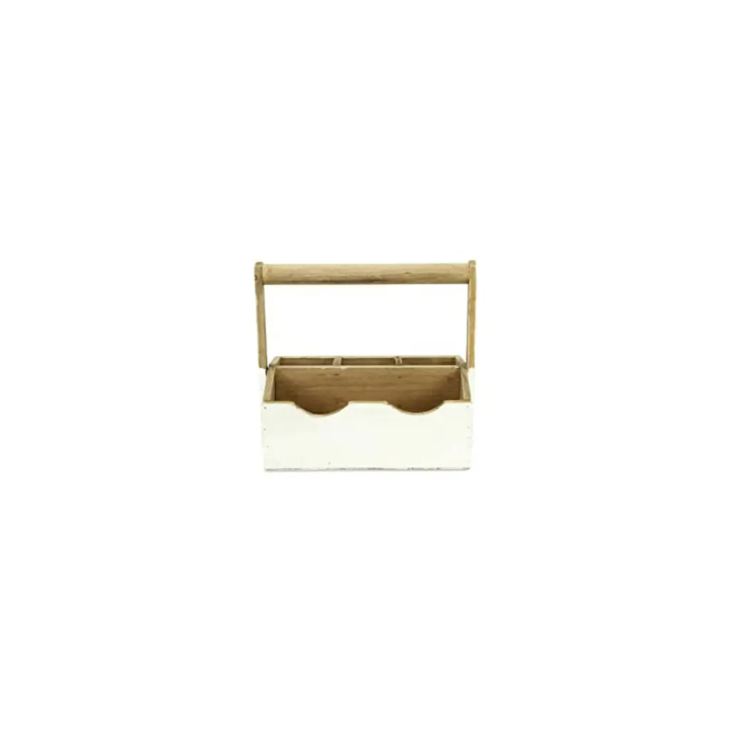Cut through the clutter and clear up a space in style with a decorative storage caddy. Offering a unique and warm touch, this piece features multiple storage pockets and a high center handle. Add it to a table, shelf or gathering area and let it elevate your look.
