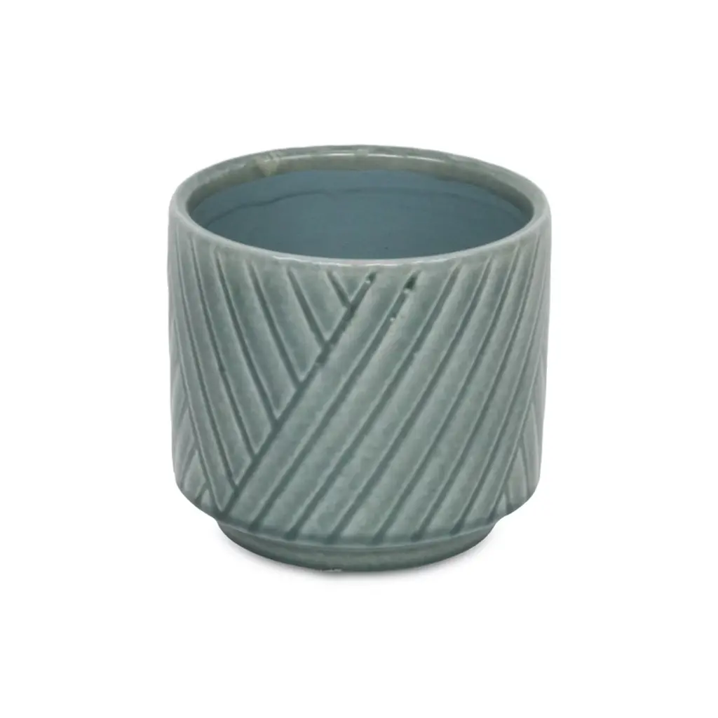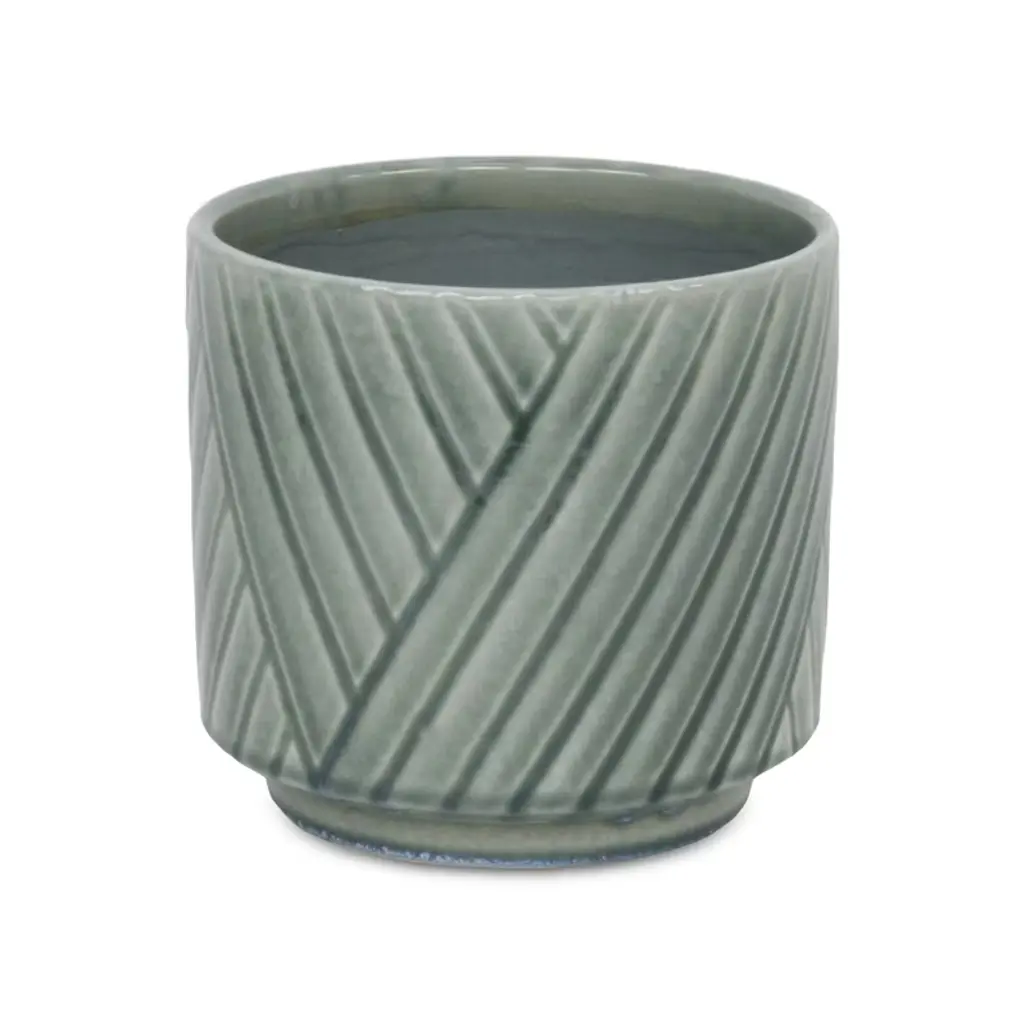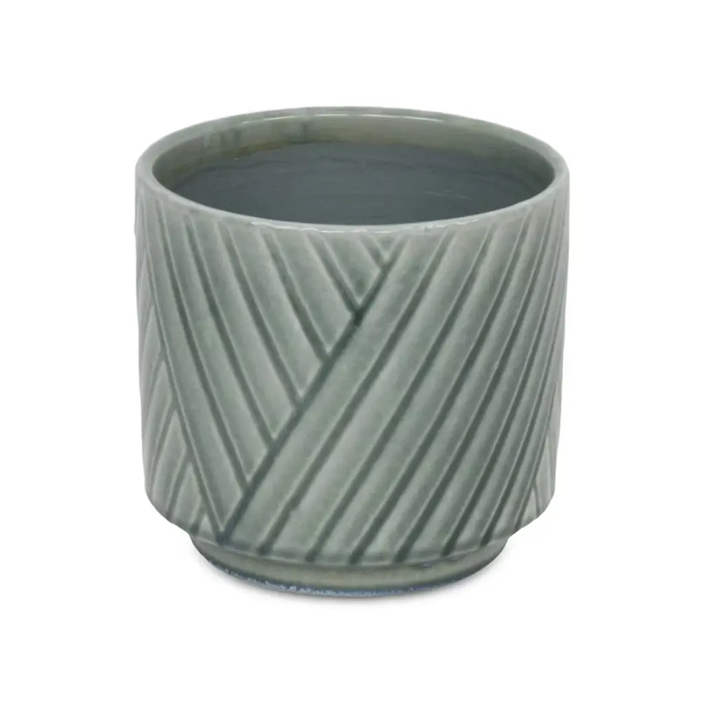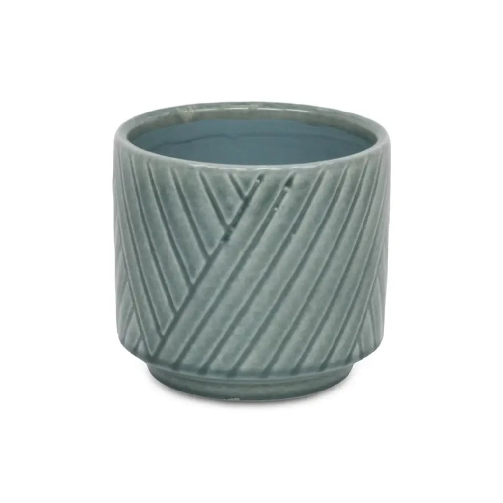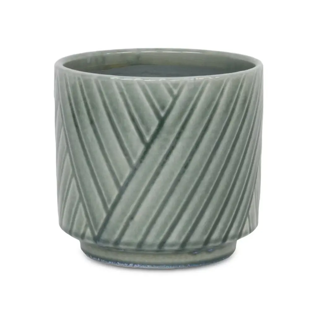 A diverse and dynamic home encompasses various types of materials to provide a well-bodied look. Ceramic has been a tried and true material with a fresh modern look for the homes of today. This green pot in particular features a straight side body with an inlet base and a cross diagonal pattern. Bring a new element into your space with this ceramic piece and let it complete the look of your home or office.