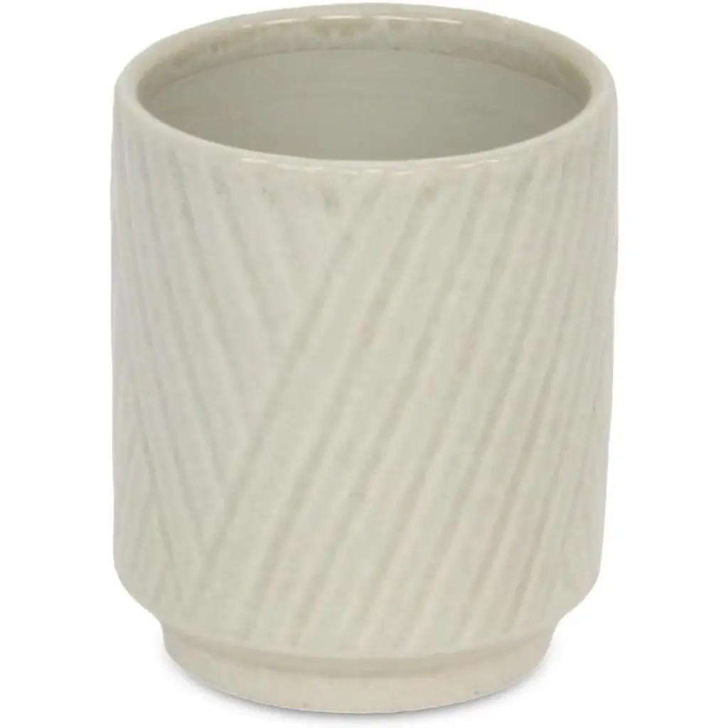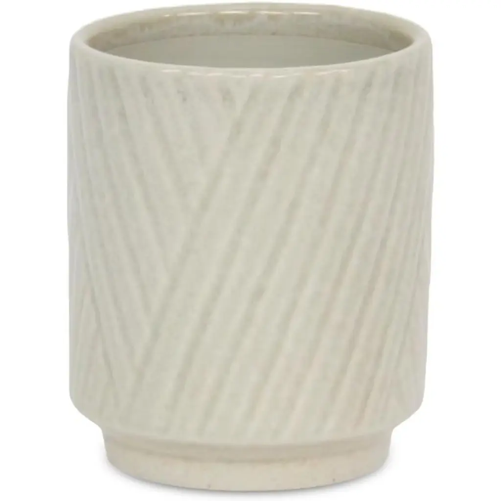 A diverse and dynamic home encompasses various types of materials to provide a well-bodied look. Ceramic has been a tried and true material with a fresh modern look for the homes of today. This white pot in particular features a straight side body with an inlet base and a cross diagonal pattern. Bring a new element into your space with this ceramic piece and let it complete the look of your home or office.