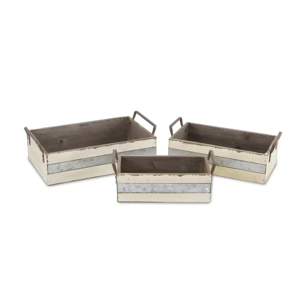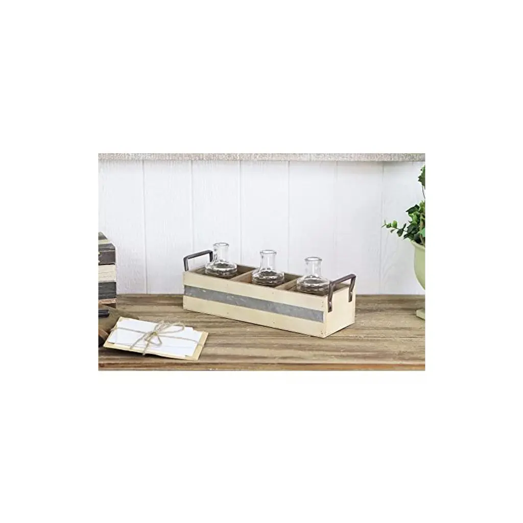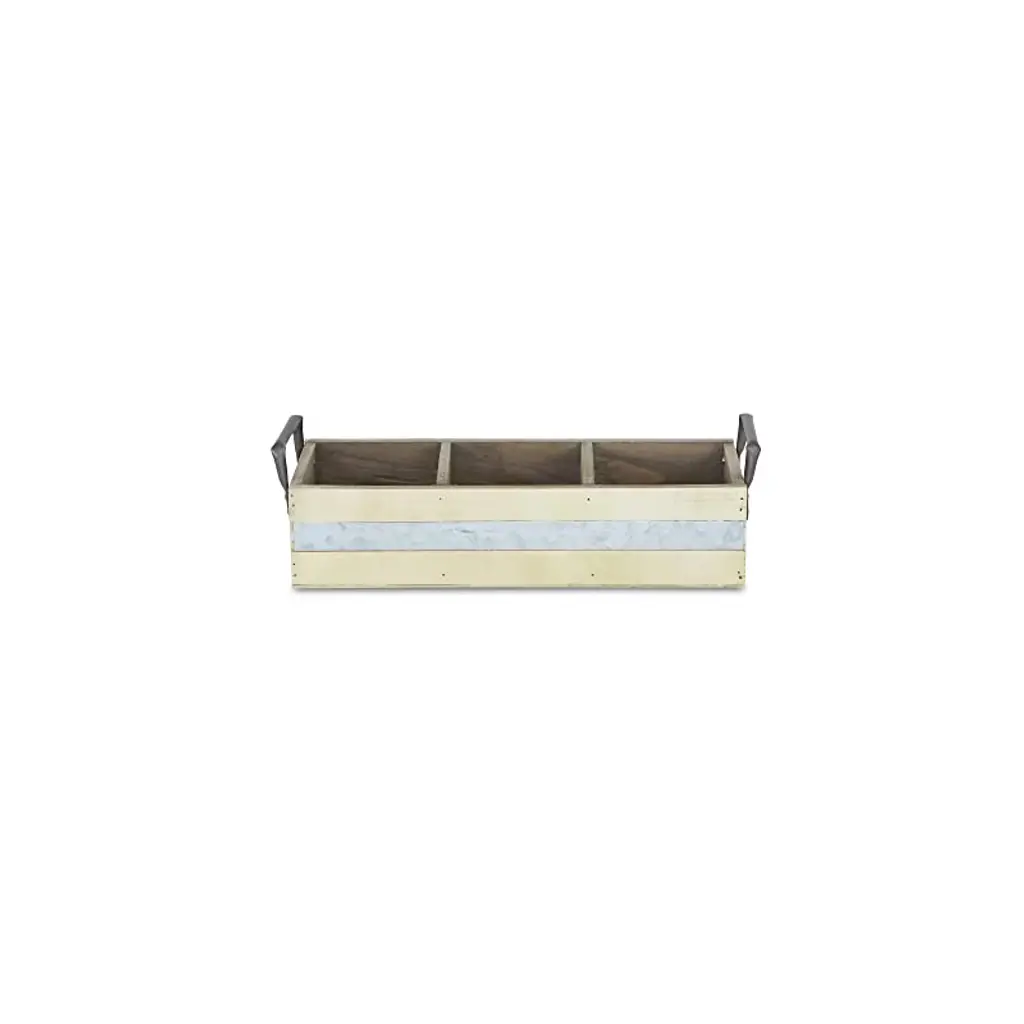 Added to homes and offices alike, decorative organizers fulfill a functional role while adding a unique touch. This piece in particular features a rustic white body with a center galvanized accent strip and 3 same-size compartments. Whether it clears clutter from a bedroom or an office desk, this piece will bring forth a special decorative element.