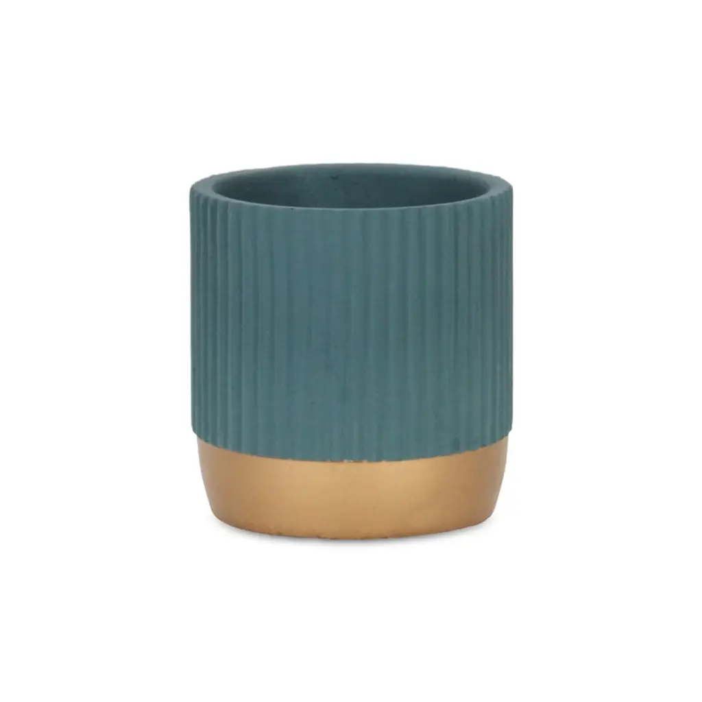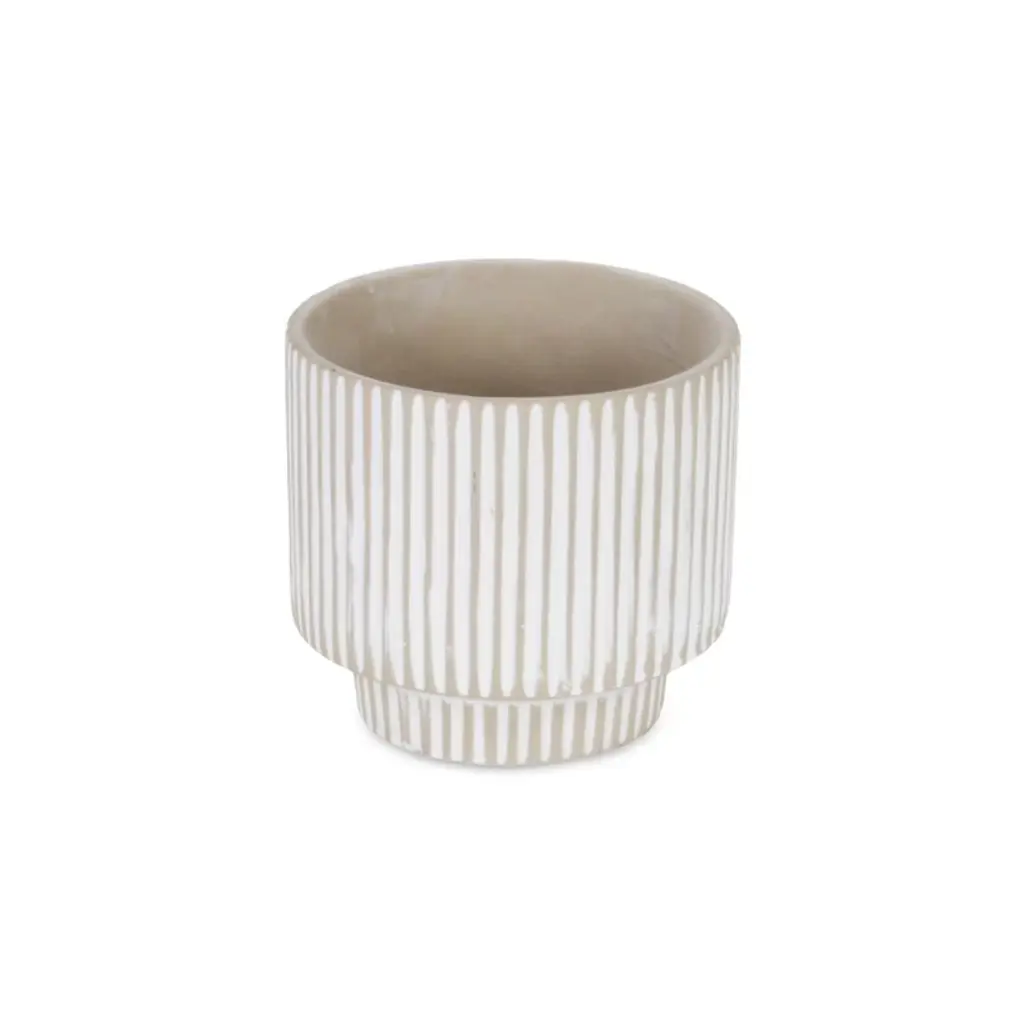 Cheung's Triani Round Lined Pattern Band Pattern Ceramic Pot- Small - Gray