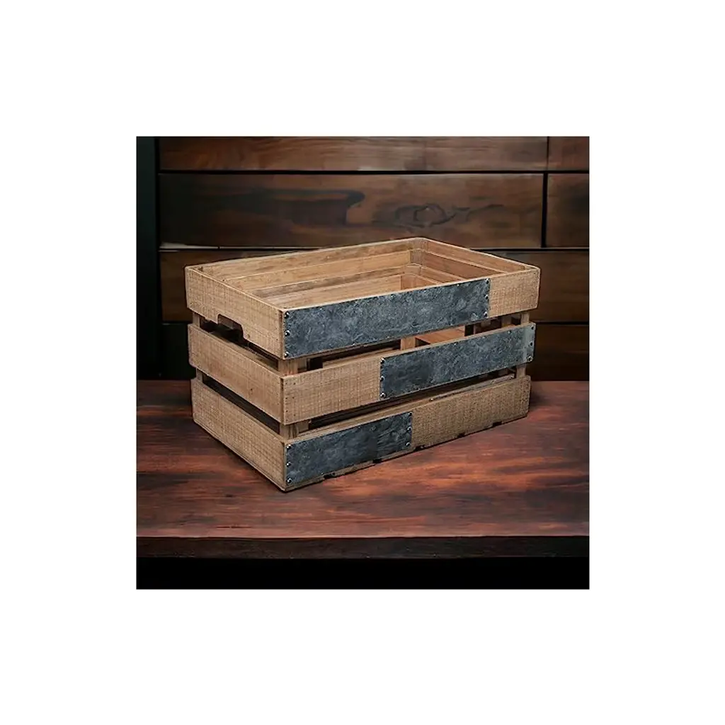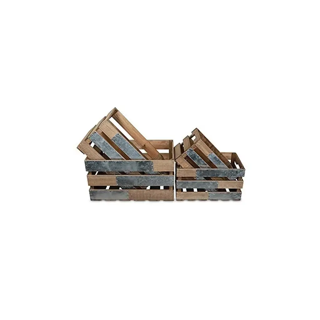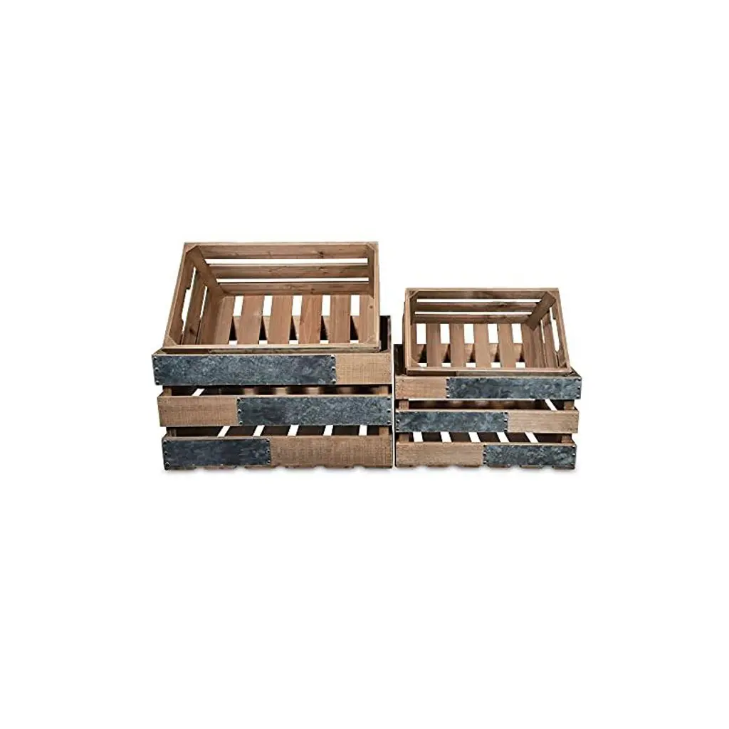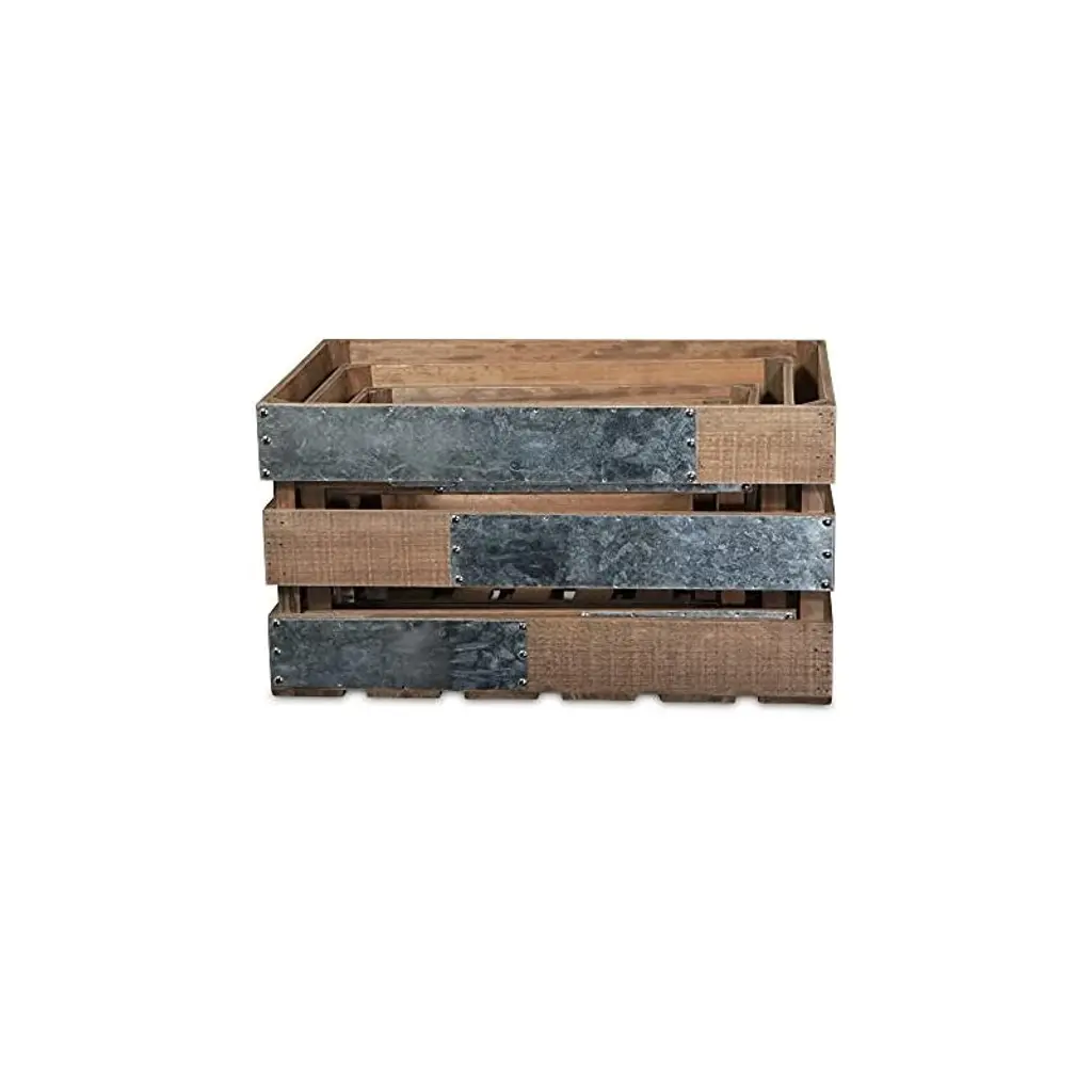Iconic, natural and homely, crates have eased their way into farmhouse, cottage and natural themed living spaces. This crate piece features three nesting sizes in a natural brown wood finish and side, galvanized metal accent panels. Accent your living space with a piece that is both functional and decorative.