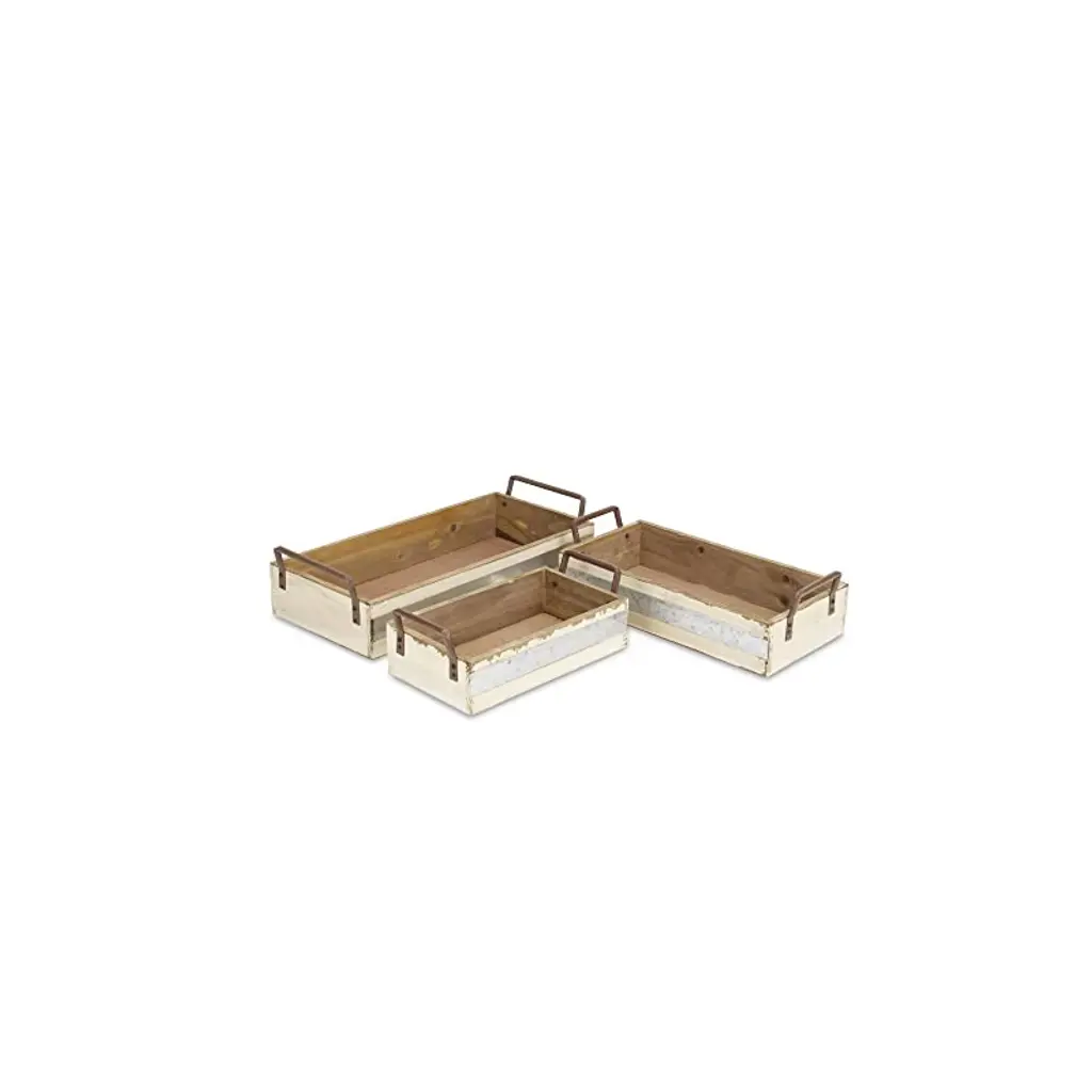 Cheung's Weston Set Of 3 Long Metal Accented Wood Crates