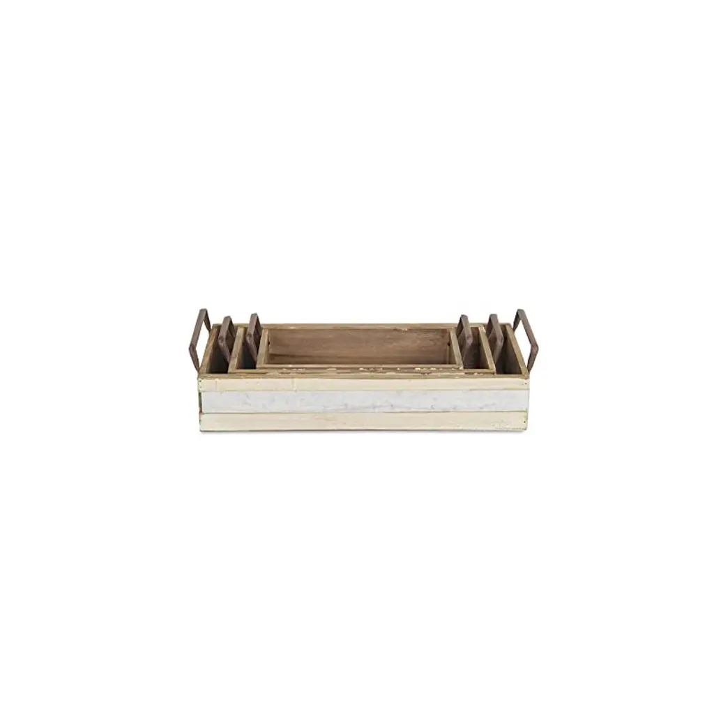 Iconic, natural and homely, crates have eased their way into farmhouse, cottage and natural themed living spaces. This crate piece features 3 nesting sizes in a rustic, off white finish complemented by a center metal strip and side handles. Accent your living space with a piece that is both functional and decorative.