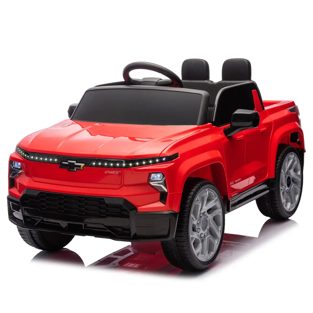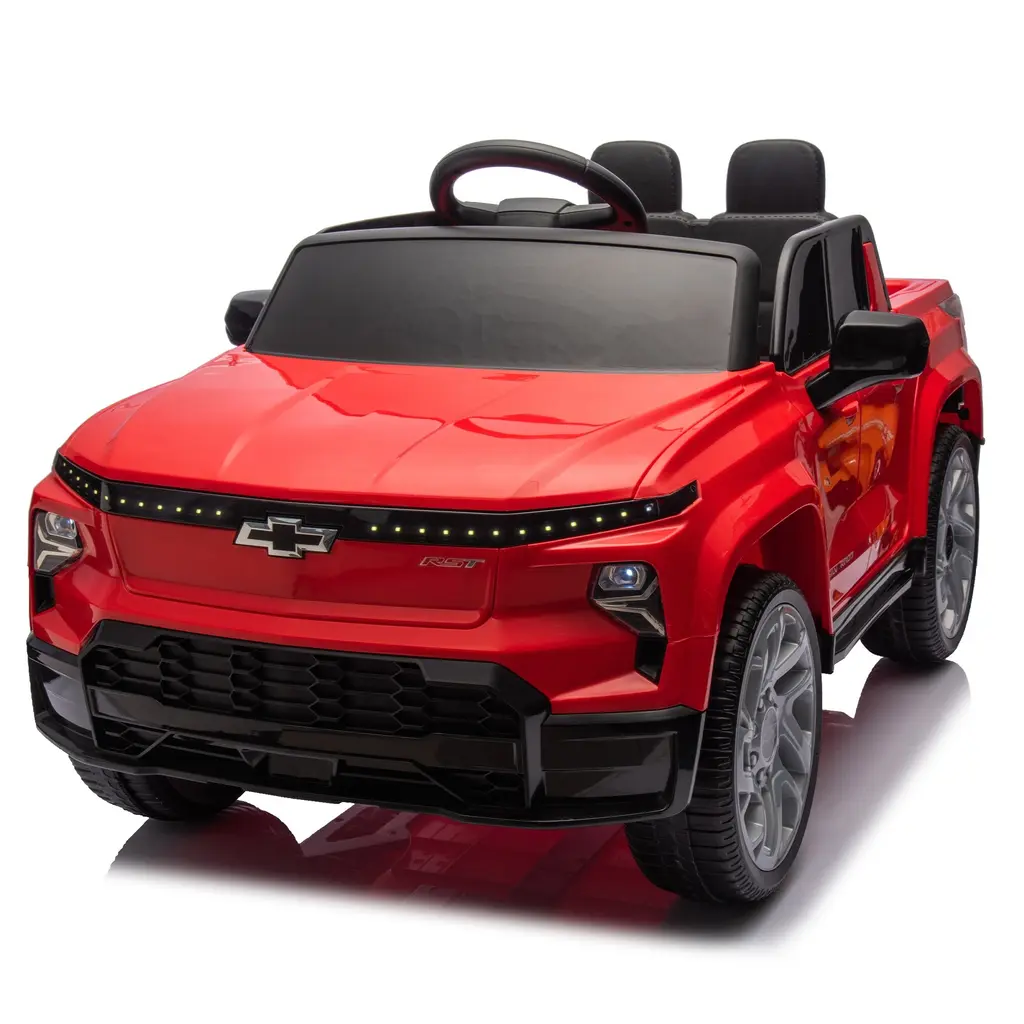 Overview: Let your child experience the excitement of driving a Licensed Chevrolet Silverado with this 24V electric ride-on car. Built to resemble a mini version of the famous Chevrolet Silverado, this ride-on features real truck details and is packed with fun, interactive features. With a slow start function for added safety, Bluetooth connectivity, MP3 music, and LED lighting, this car will keep your child entertained while giving them the thrill of driving their very own truck. Key Features: Why This Ride-On Is Perfect: This Licensed Chevrolet Silverado Ride-On Car is a perfect combination of style, fun, and safety. The car's slow start function makes it ideal for young children, while the interactive Bluetooth music and LED lights enhance the driving experience. With easy-to-use controls and a durable build, this ride-on is sure to become your child's favorite mode of transportation.