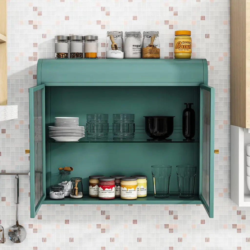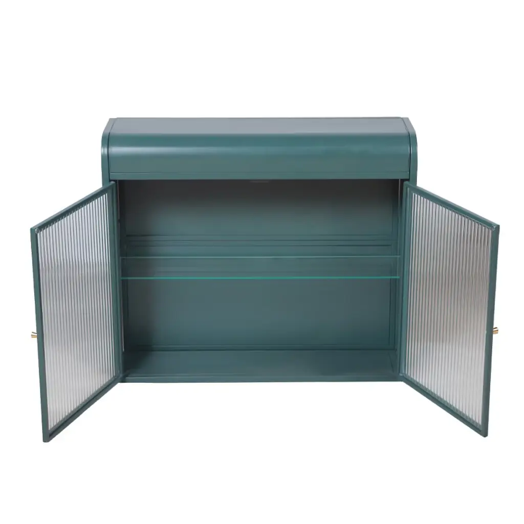 1. Stylish and Elegant DesignThis wall-mounted cabinet combines a sleek, modern look with timeless elegance. Featuring a crown-molded, curved top for a unique design, it enhances any space with its green finish and fluted glass doors. The cabinet's chrome knobs add a touch of sophistication, making it a perfect fit for your bathroom, kitchen, bedroom, living room, or office.2. Optimized and Flexible StorageDesigned for practicality, this cabinet includes interior glass shelves that provides additional storage or display space for easy access to frequently used items. Removable shelves allow for even more flexibility, enabling you to adjust the storage space as needed.3. Durable and Premium MaterialConstructed with high-quality metal and tempered glass, this cabinet is built for long-lasting use. The fluted glass doors not only add visual appeal but also provide both aesthetics and privacy. The metal frame ensures superior load-bearing capacity and sturdiness, while the electrostatic powder coating makes it resistant to rust and wear, perfect for high-humidity environments like bathrooms.4. Easy Assembly and Versatile InstallationAssembly is quick and easy with the clear, step-by-step instructions and labeled parts. This versatile cabinet can be mounted on the wall to save floor space, making it ideal for small rooms. Its modern design and practical storage capabilities make it perfect for use as a medicine cabinet, kitchen storage, or living room display piece. Whether placed above the vanity, toilet, or desk, it helps you declutter and organize in style.