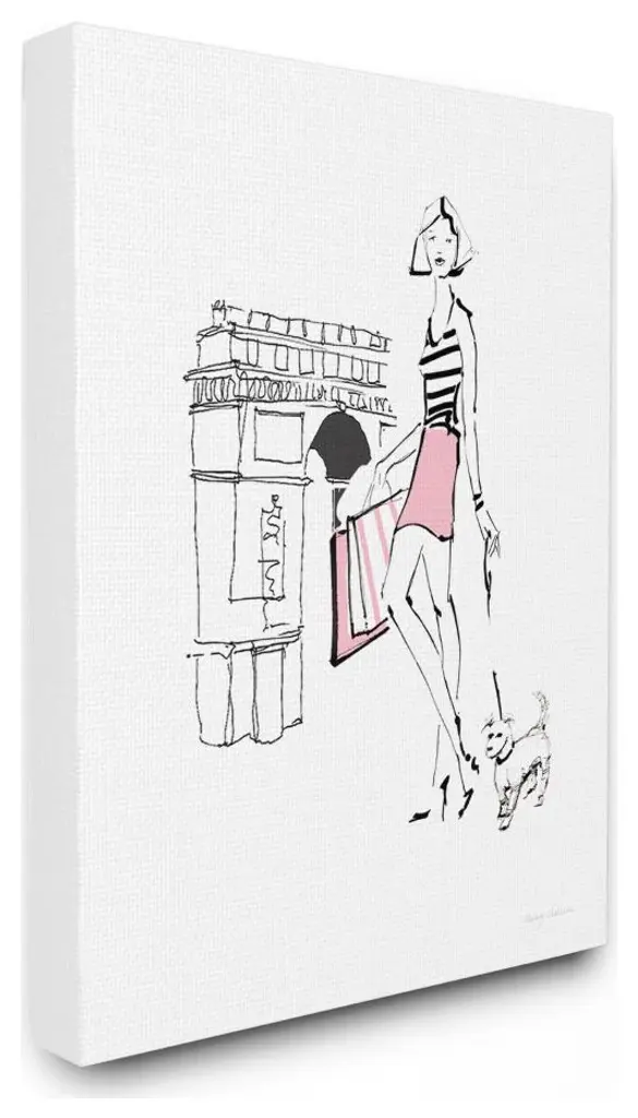 Chic Paris Fashion Dog Walker Pink Black Sketch,1pc, Each 16 X 20