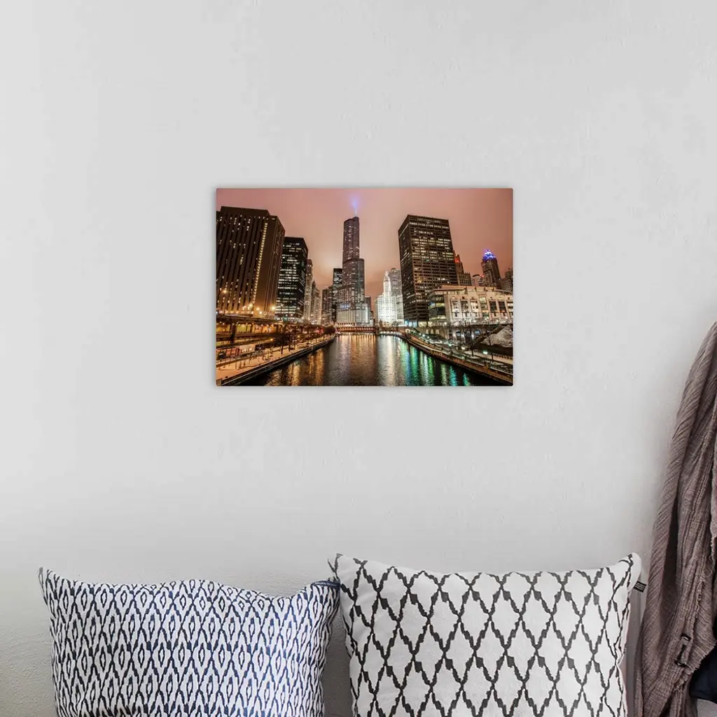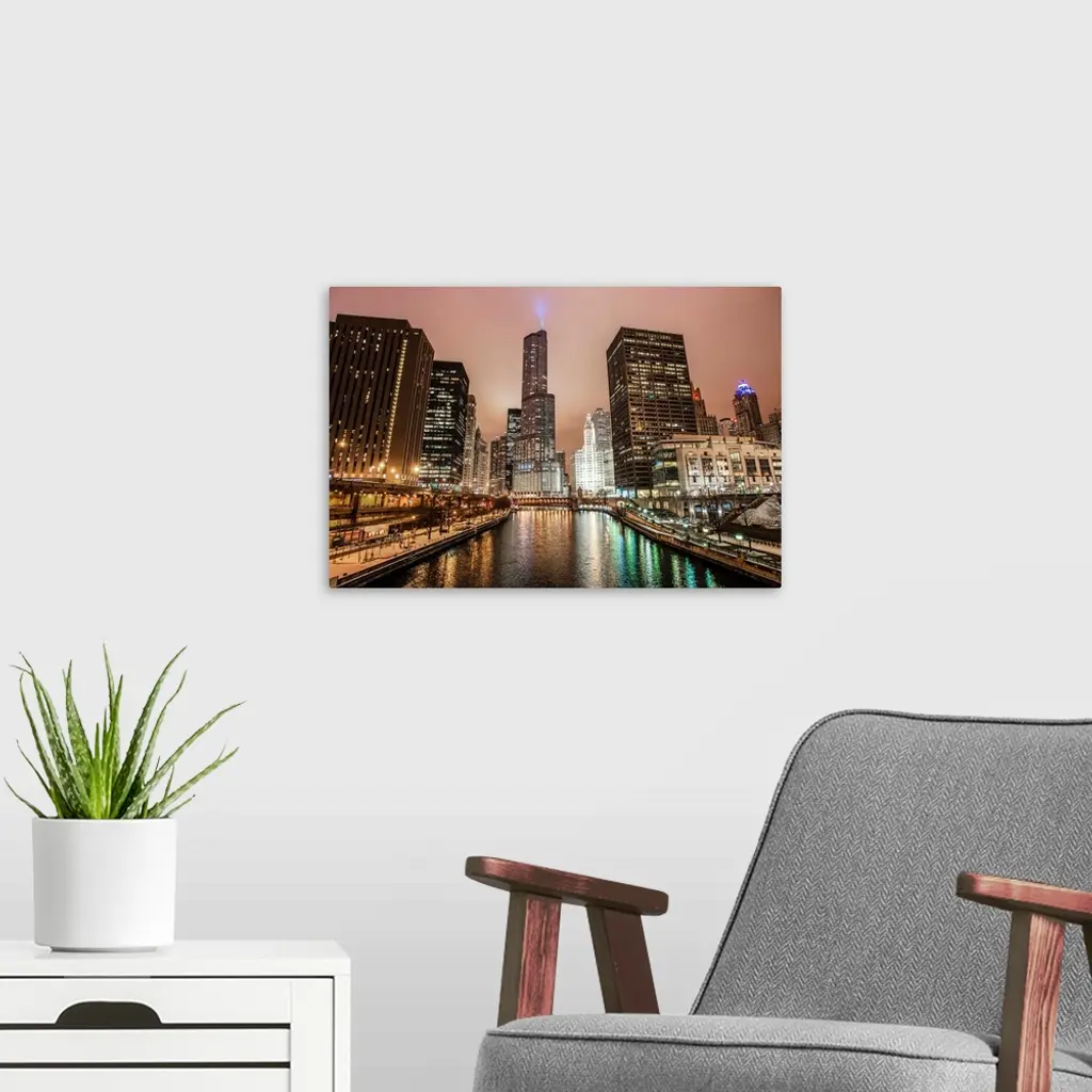 View of Trump International Hotel & Tower Chicago from the William P. Fahey Bridge over Chicago River.