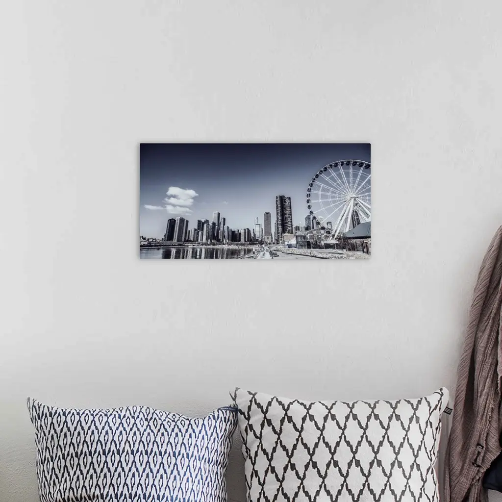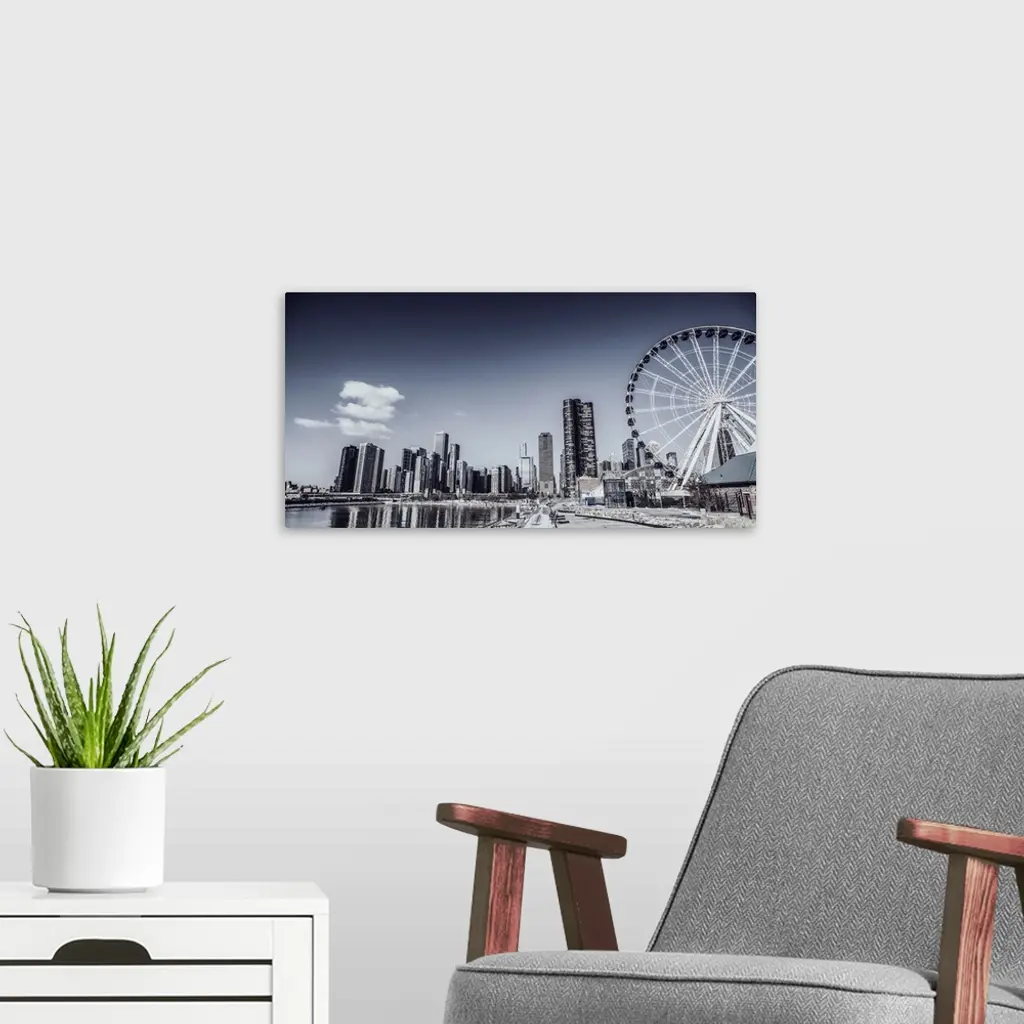 Photo of Chicago skyline with Centennial Wheel from Navy Pier.