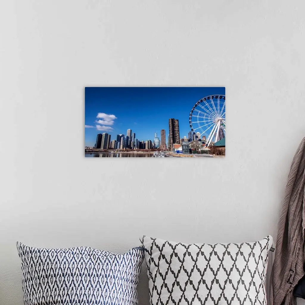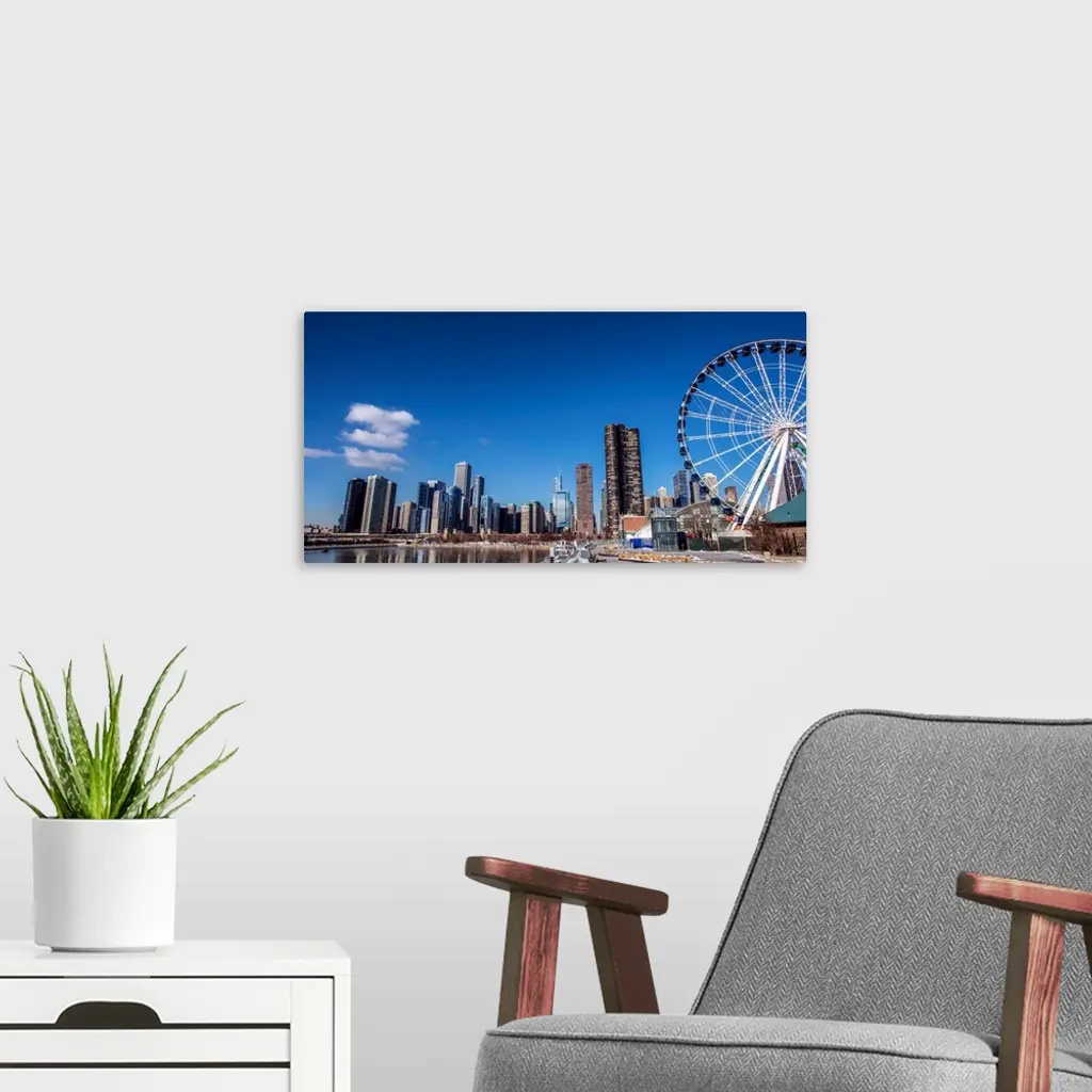 Photo of Chicago skyline with Centennial Wheel from Navy Pier.