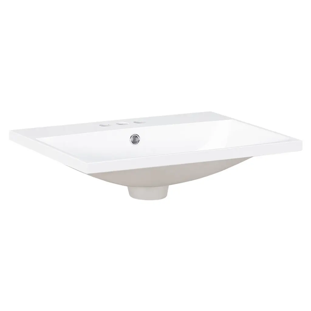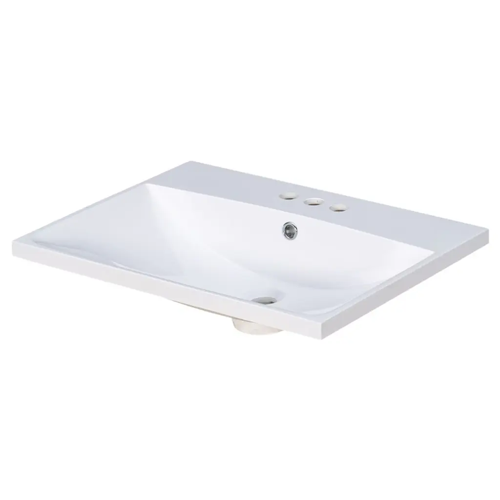 Chicfurnit Bathroom Sink 24 Inch Ceramic Vanity Top With White Basin And Pre-drilled Faucet Holes For Bathroom, White, 24"*18"*6.6"