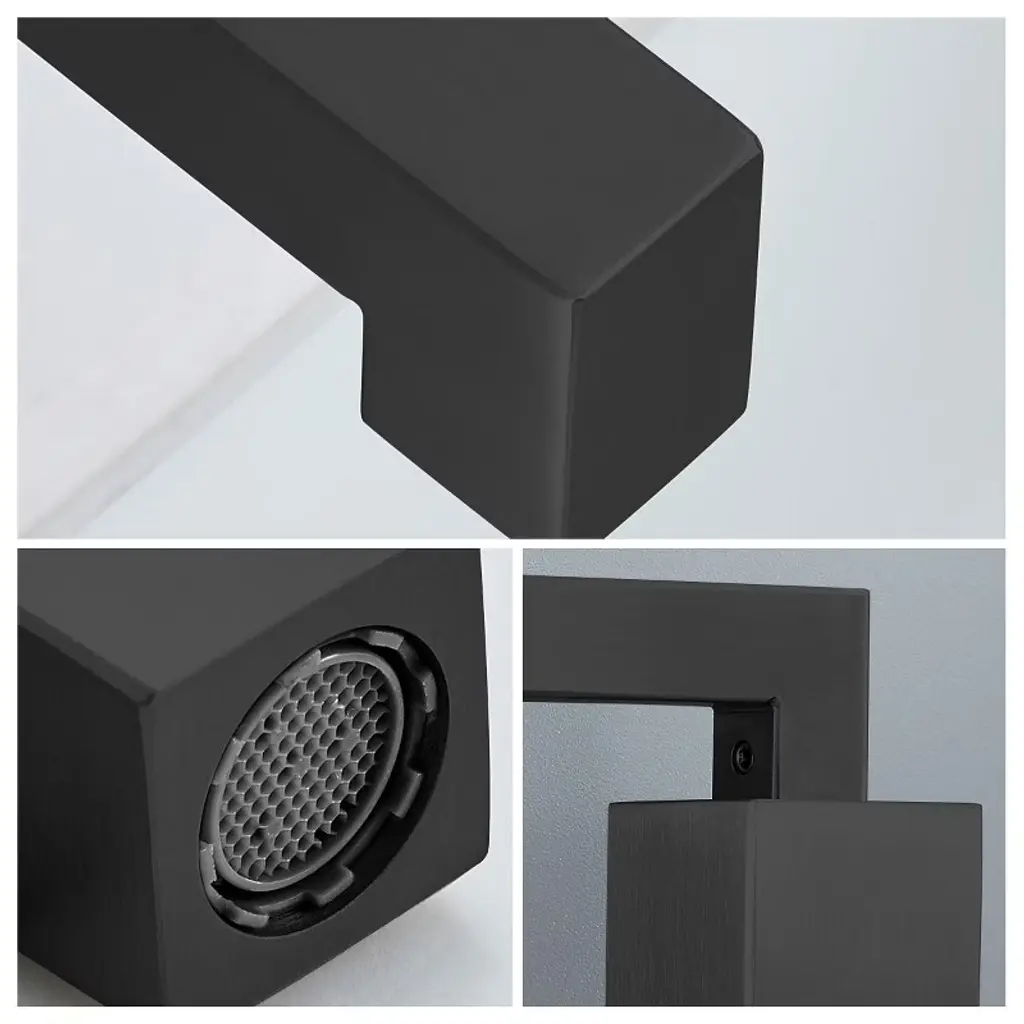Chicfurnit Bathroom Sink Faucet Widespread Waterfall Design With Pop Up Drain And Supply Hose For Bathroom, Black, 14.57"*11.81"*3.54"