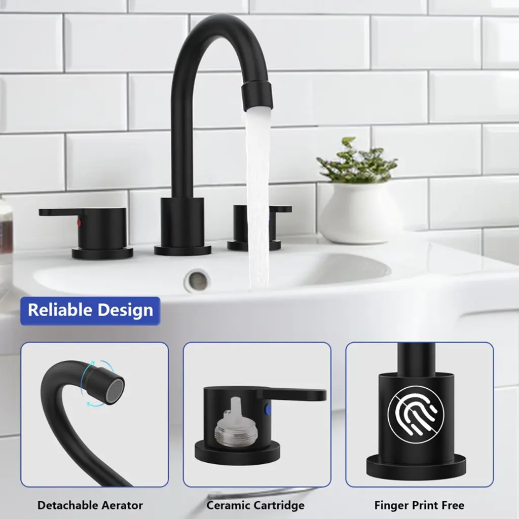 ChicFurnit bathroom sink faucet combines style and functionality for your bathroom. Made from premium materials, it resists rust and corrosion, staying clean and healthy. The dual handles offer precise control over water temperature and flow, with a 360-degree swivel spout. Designed for drip-free performance with a ceramic disc cartridge, this faucet includes an aerator to conserve water. Easy to install with all required hardware, it saves both water and energy with each use.