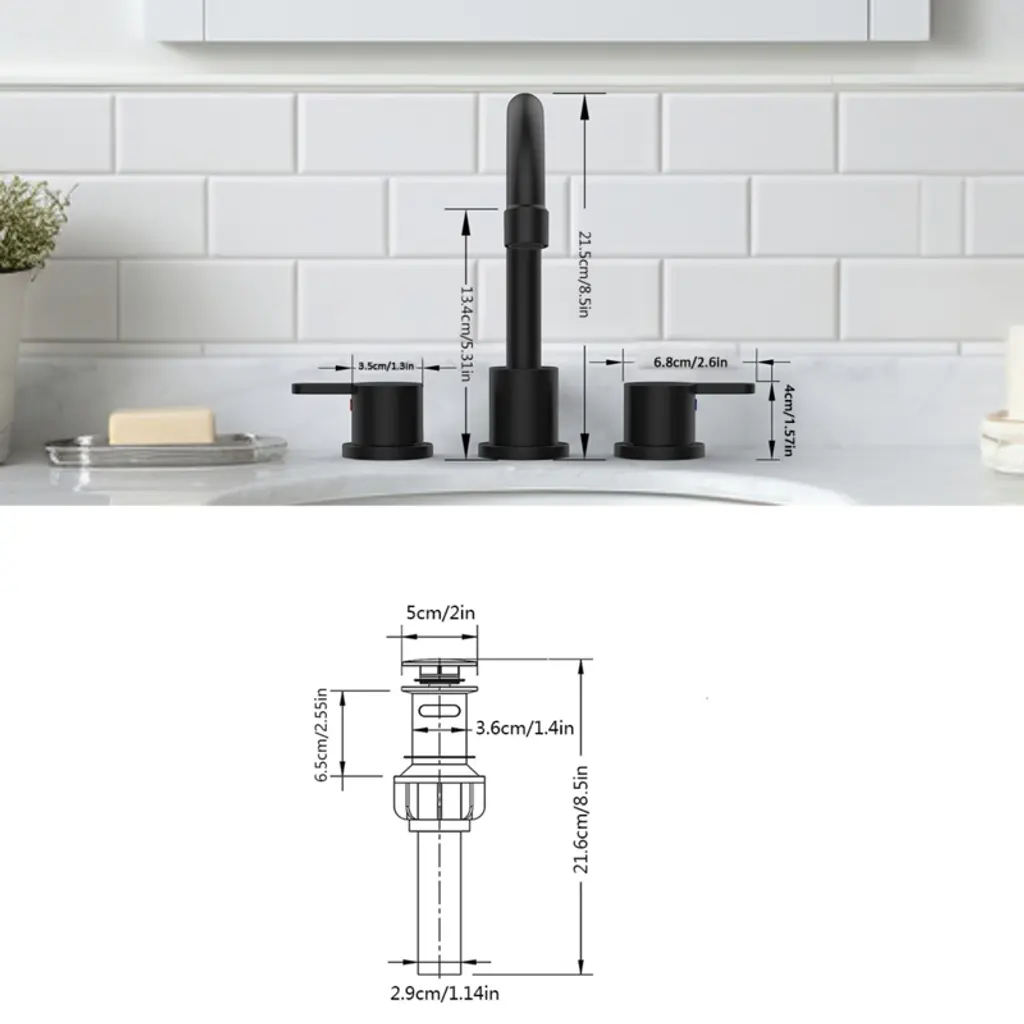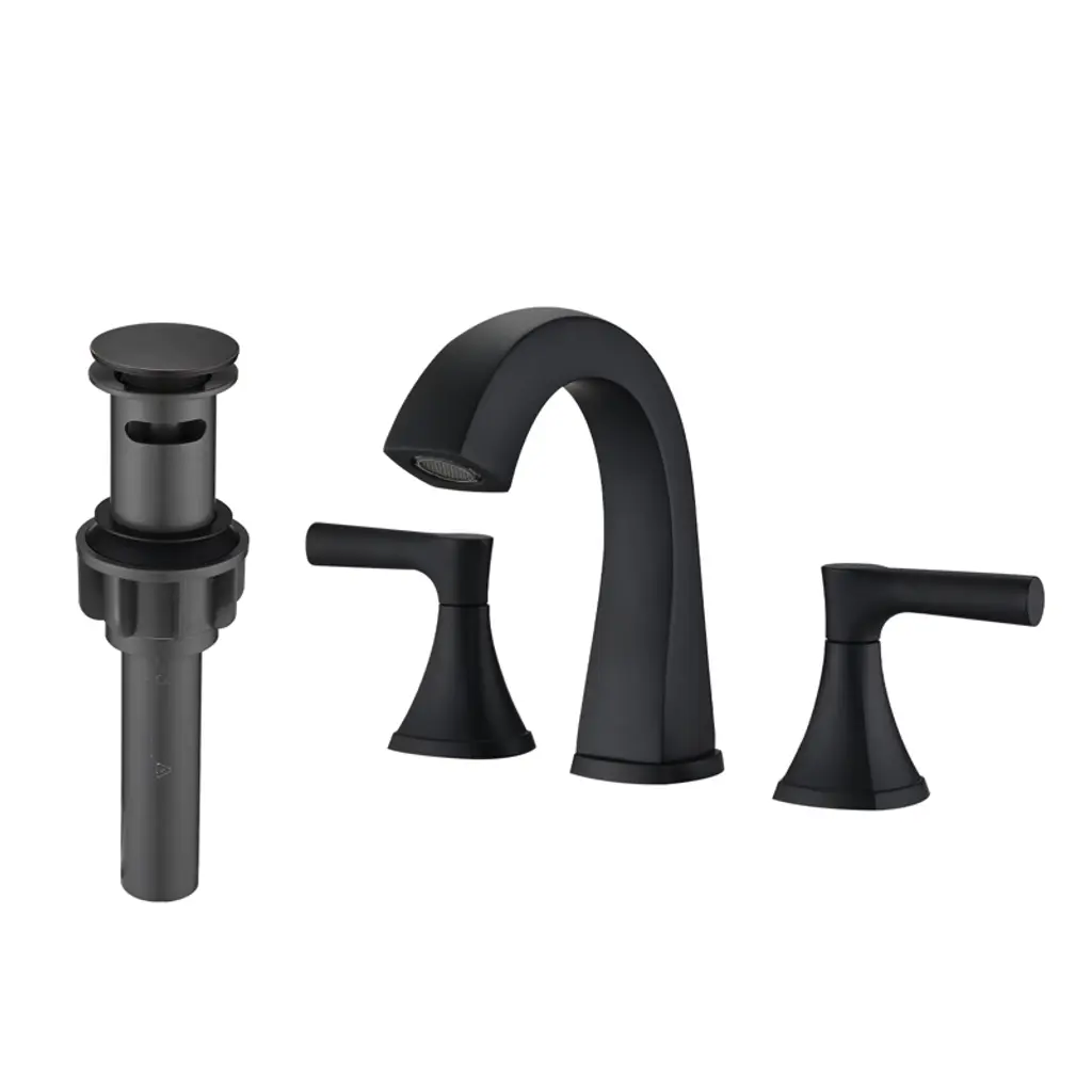 Chicfurnit Bathroom Sink Faucet Widespread With 360 Swivel Spout And Pop Up Drain For Bathroom, Black, 13.58"*12.4"*3.54"