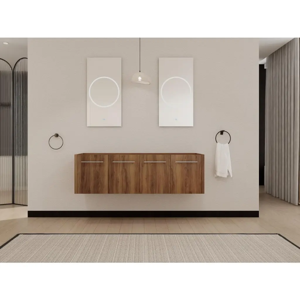 Chicfurnit Bathroom Storage Cabinet Wall Mounted Vanity With Soft Close Doors For Bathroom Upgrade, Brown, 58.69"*17.94"*17.69"