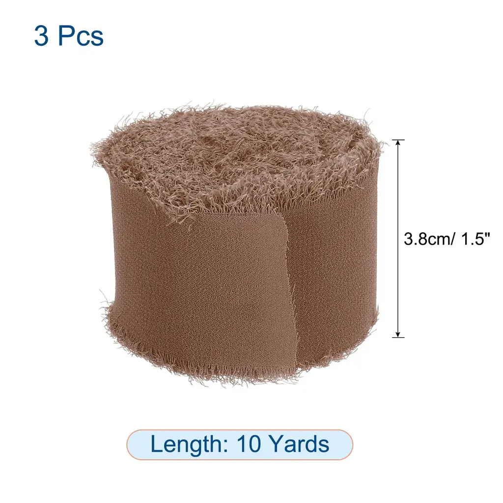 Add a touch of elegance and sophistication to your crafts and decorations with this Handmade Fringe Chiffon Ribbon. Made from smooth and soft polyester chiffon fibers, this ribbon is as light as silk. The unique fringed edges add a stylish and luxurious touch to any project. Perfect for wedding invitations, bouquet packaging, photography modeling, and party decorations. Each pack includes 3 rolls of ribbon, each measuring 10 yards in length and 1.5 inches in width. Please note that due to its handmade nature, there may be a slight variation in length. Elevate your crafts with this beautiful chiffon ribbon.Features: