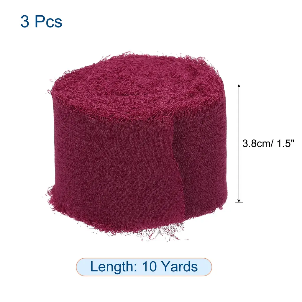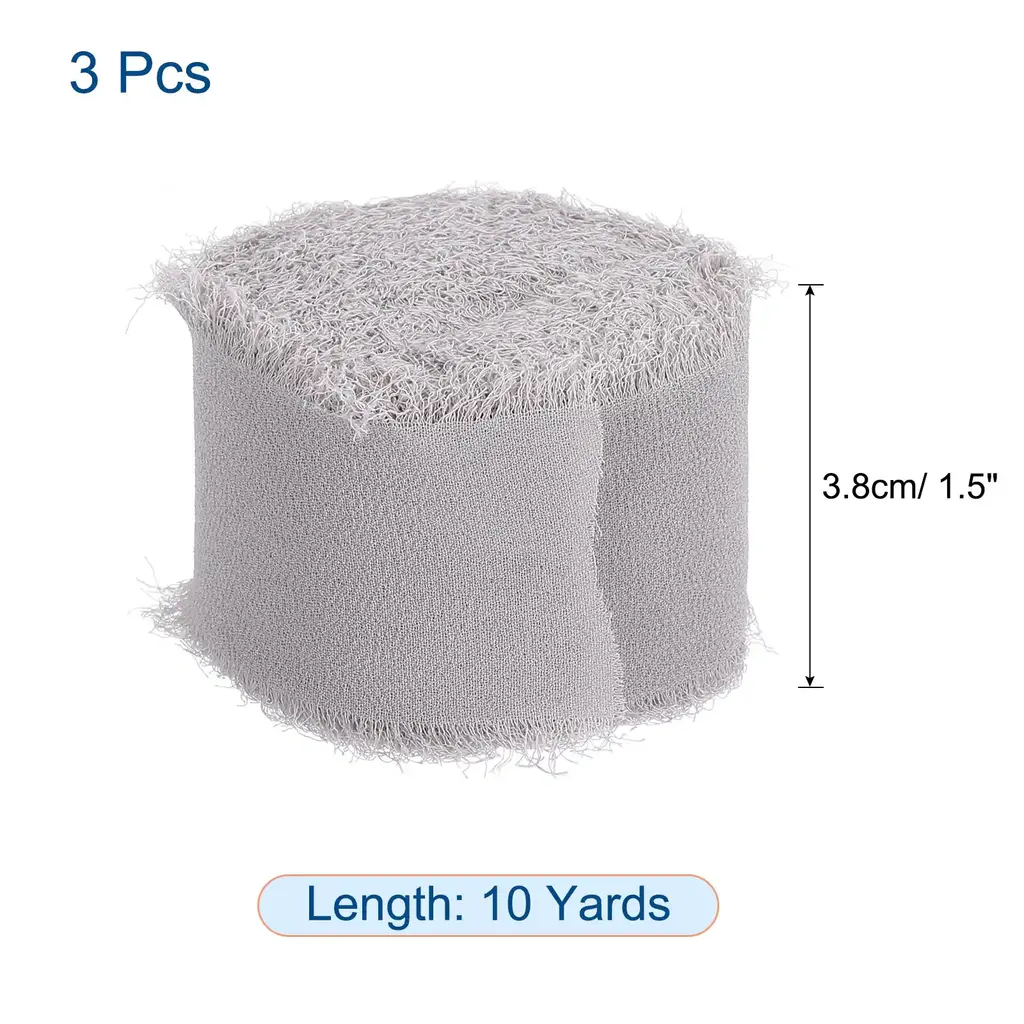 Add a touch of elegance and sophistication to your crafts and decorations with this Handmade Fringe Chiffon Ribbon. Made from smooth and soft polyester chiffon fibers, this ribbon is as light as silk. The unique fringed edges add a stylish and luxurious touch to any project. Perfect for wedding invitations, bouquet packaging, photography modeling, and party decorations. Each pack includes 3 rolls of ribbon, each measuring 10 yards in length and 1.5 inches in width. Please note that due to its handmade nature, there may be a slight variation in length. Elevate your crafts with this beautiful chiffon ribbon.Features: