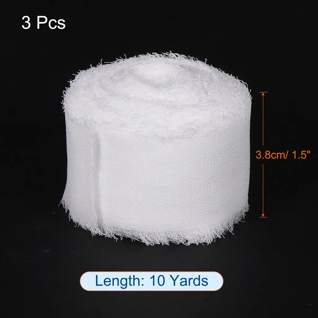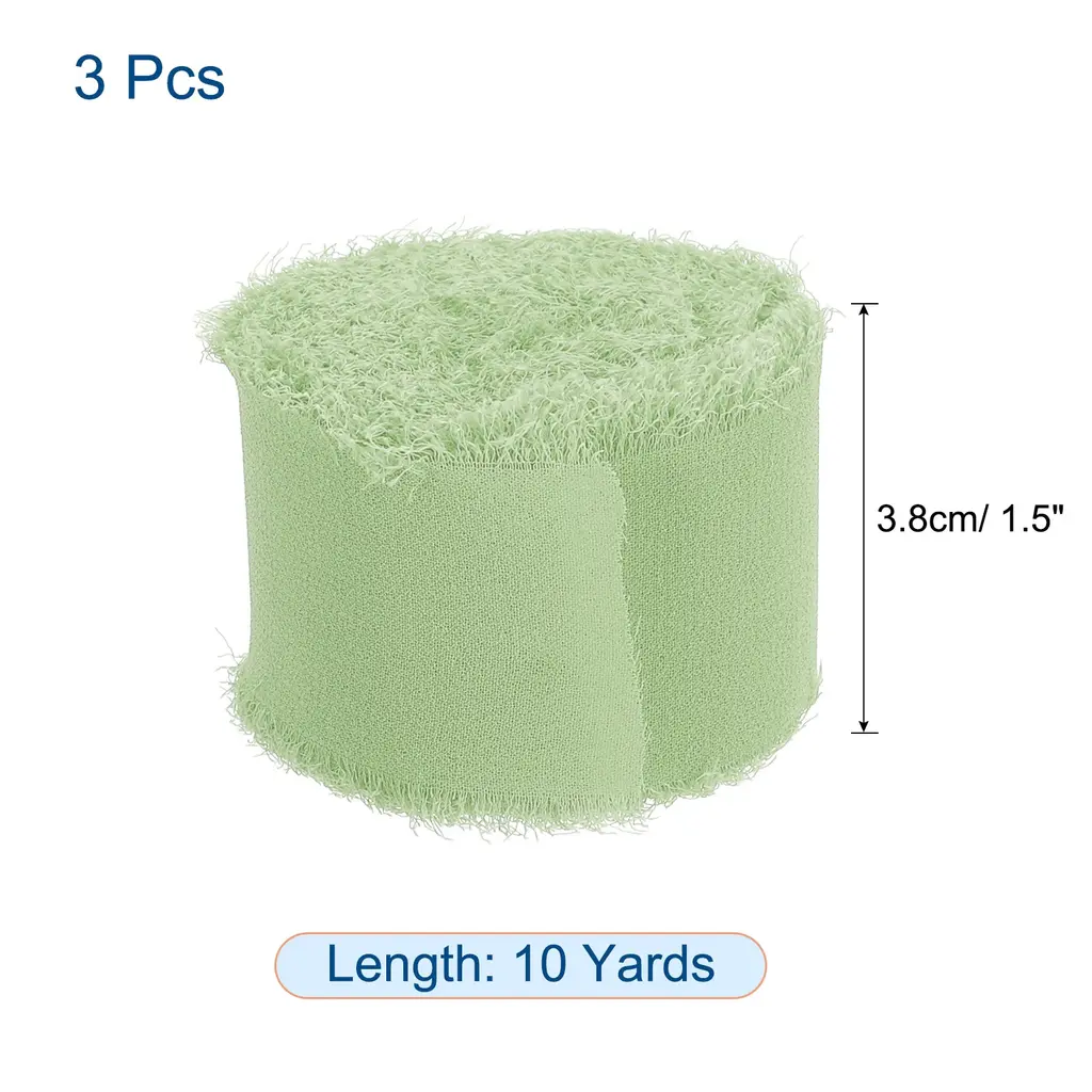 Add a touch of elegance and sophistication to your crafts and decorations with this Handmade Fringe Chiffon Ribbon. Made from smooth and soft polyester chiffon fibers, this ribbon is as light as silk. The unique fringed edges add a stylish and luxurious touch to any project. Perfect for wedding invitations, bouquet packaging, photography modeling, and party decorations. Each pack includes 3 rolls of ribbon, each measuring 10 yards in length and 1.5 inches in width. Please note that due to its handmade nature, there may be a slight variation in length. Elevate your crafts with this beautiful chiffon ribbon.Features: